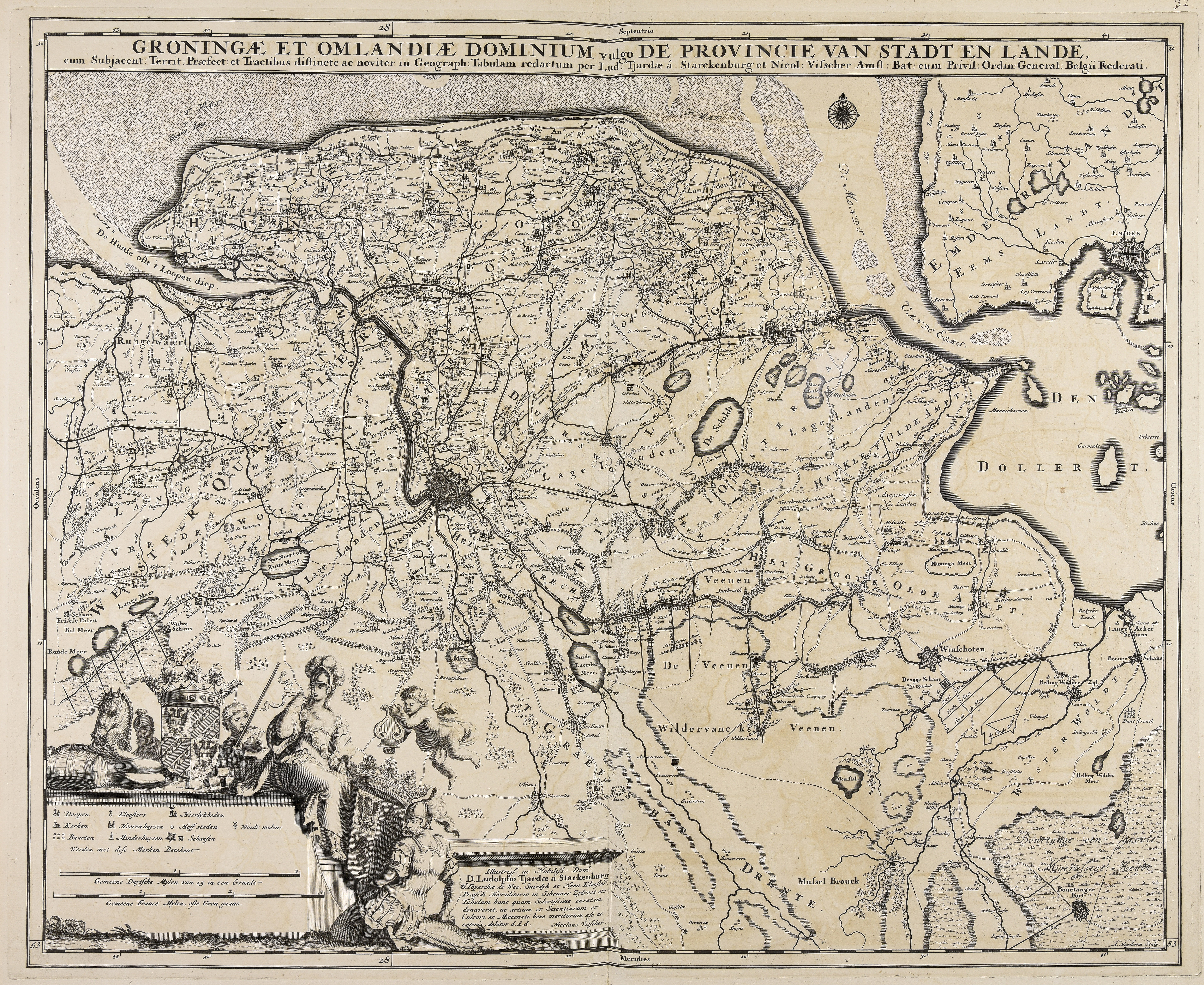 | Groningae et Omlandiae dominium vulgo de Provincie van Stadt en Lande : cum subjacent. territ. praefect. et tractibus distincte ac noviter in geograph. tabulam redactum per Lud. Tjardae â Starckenburg et Nicol. Visscher ... |