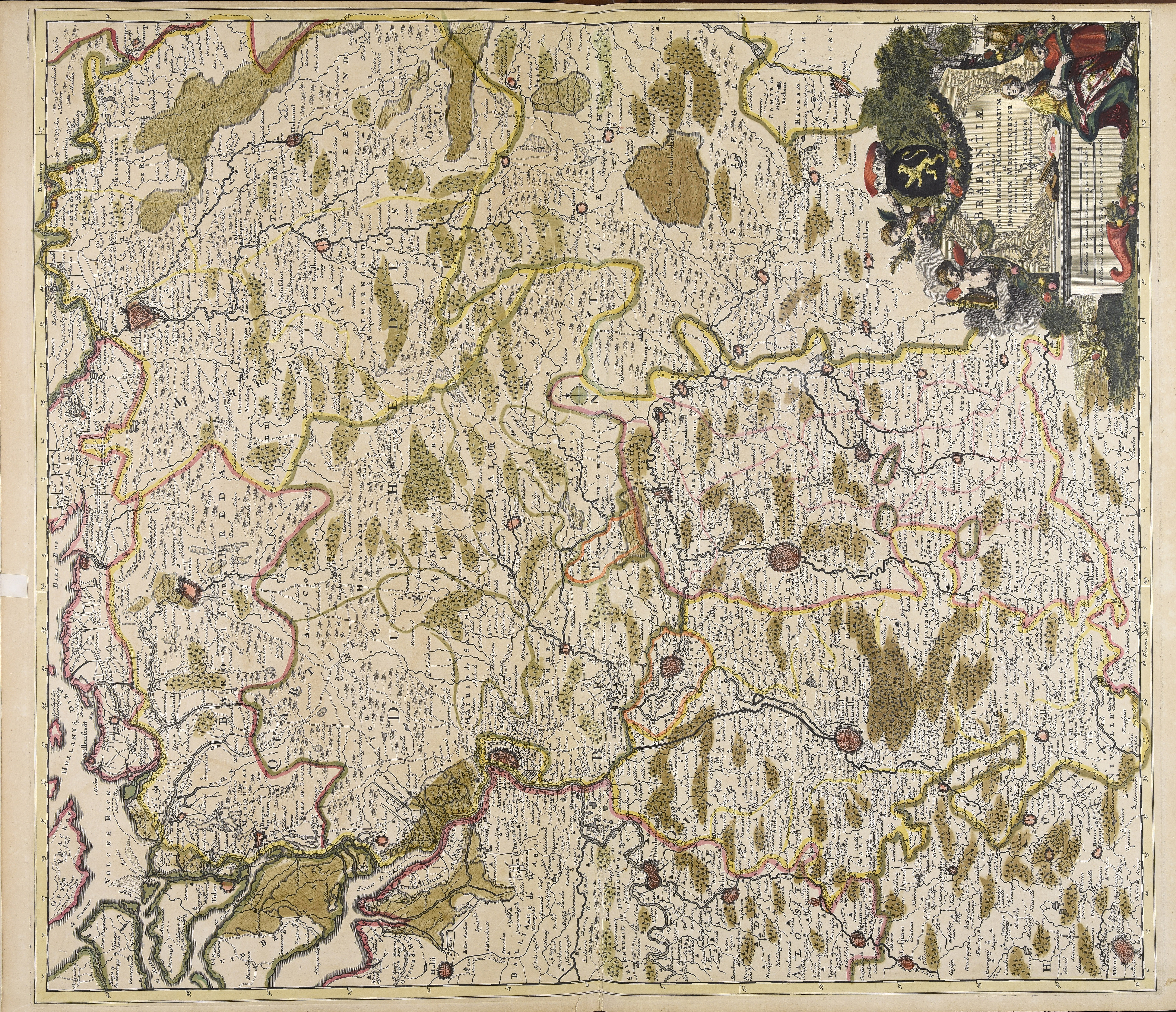 Calcografia; 575x505 mm; scala 1:228.000; pubblicata probabilmente nel 1696; (Cfr. Peter van der Krogt, Koeman's atlantes neerlandici, 't Goy-Houten, HES, 1997, vol. 5, in corso di pubblicazione)