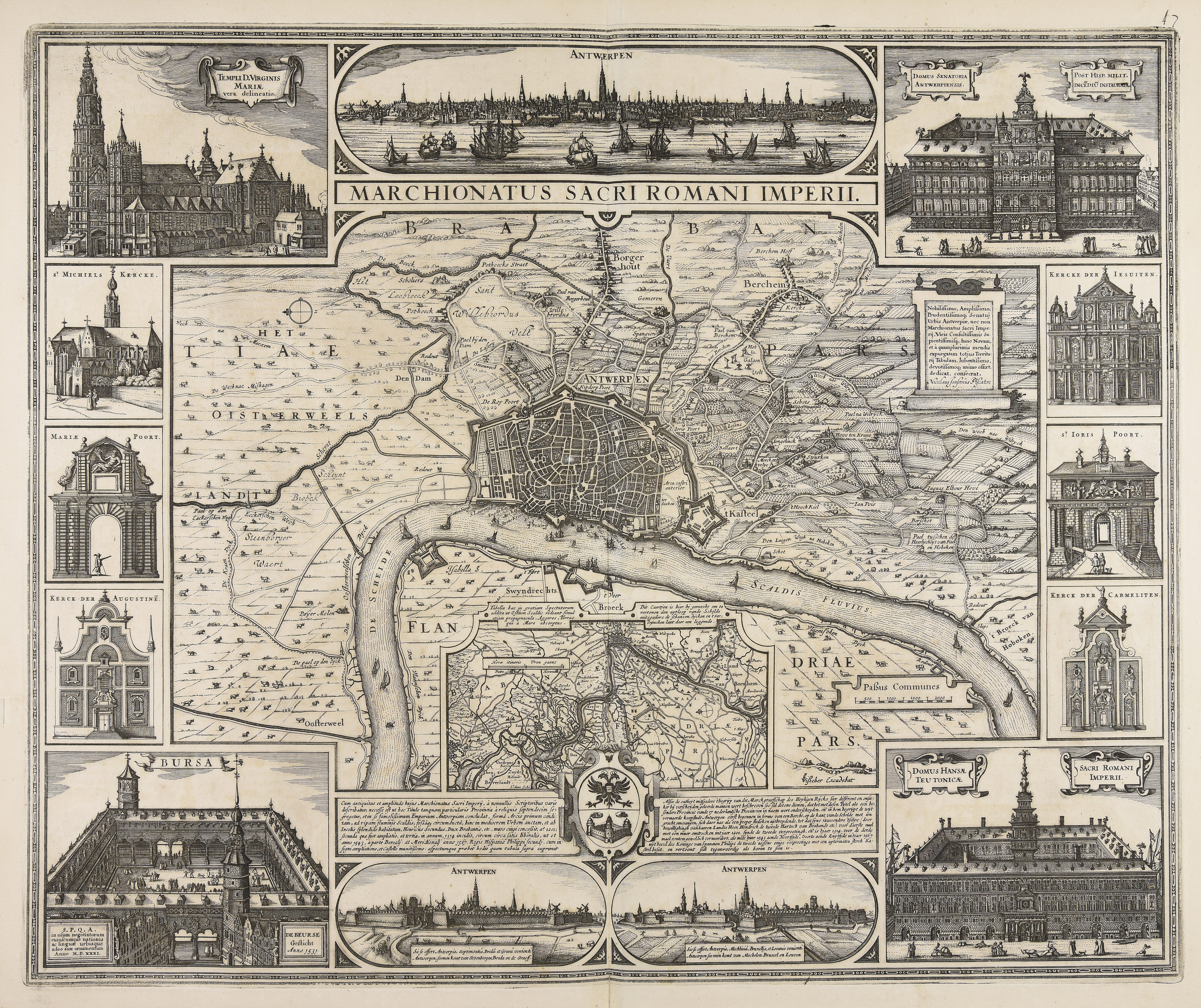 Calcografia; 468x565 mm; scala 1:25.000; pubblicata nel 1652 circa; (Cfr. Peter van der Krogt, Koeman's atlantes neerlandici, 't Goy-Houten, HES, 1997, vol. 5, in corso di pubblicazione)