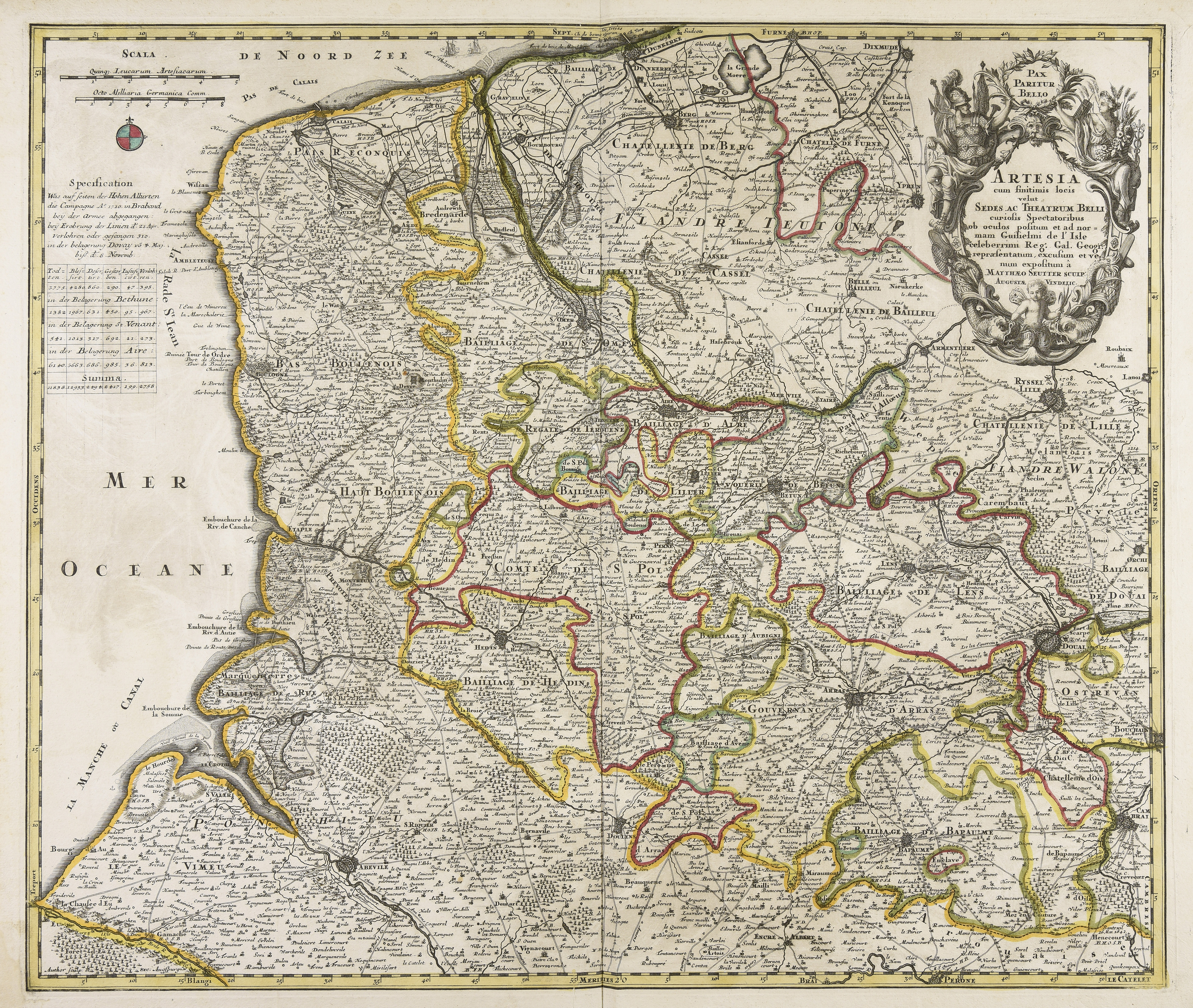 Calcografia; 485x575 mm; (Cfr. P.H. Maurer, Das Druckprivileg für Matthäeus Seutter, in: Cartografia Helvetica, 8, 1993, pp. 32-36)