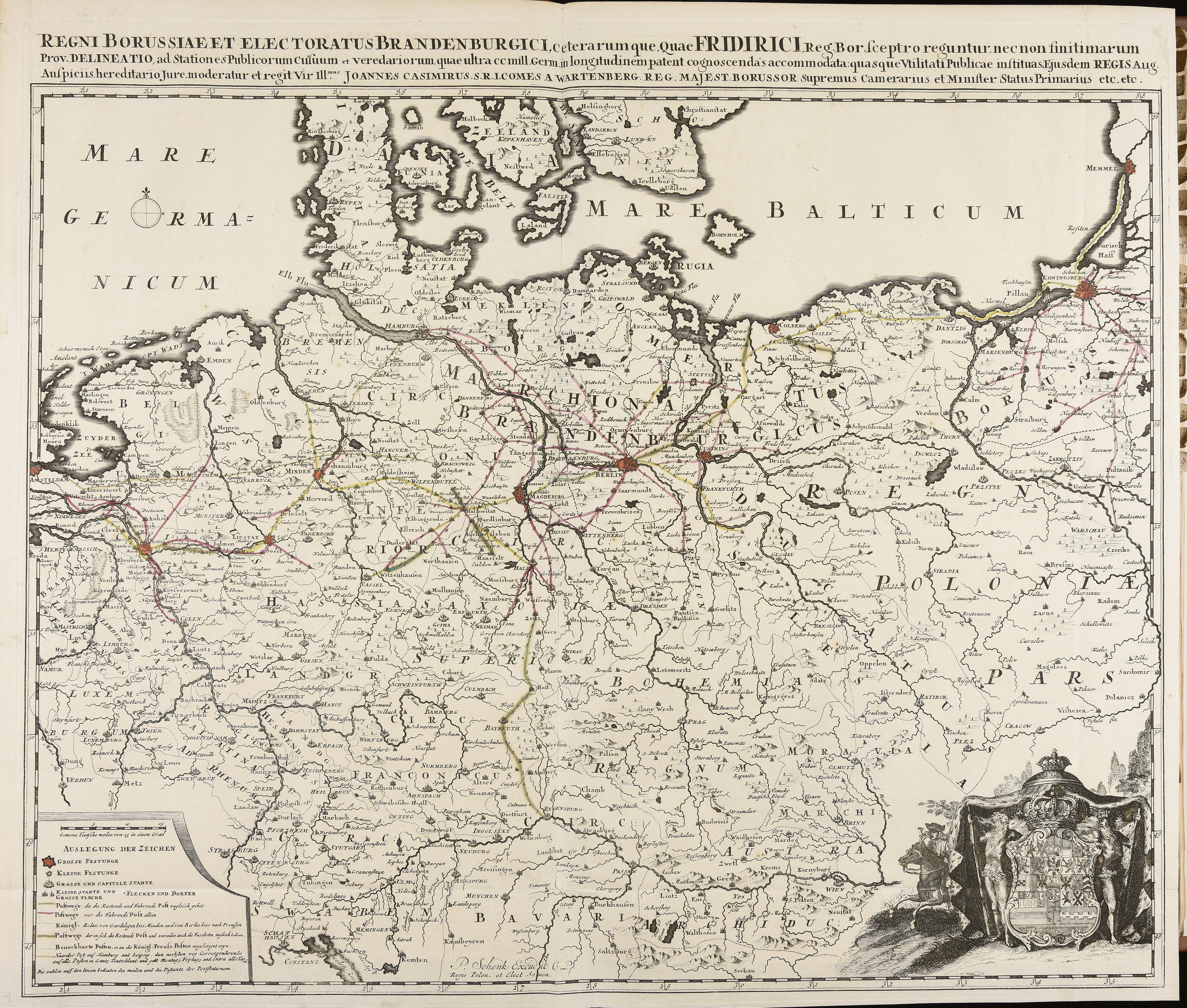 | Regni Borussiae et electoratus Brandenburgici ceterarumque quae Fridirici reg. Bor. sceptro reguntur nec non finitimarum prov. delineatio ad stationes publicorum cursuum et veredariorum quae ultra CC mill. Germ. in longitudinem patent cognoscendas accomod |
