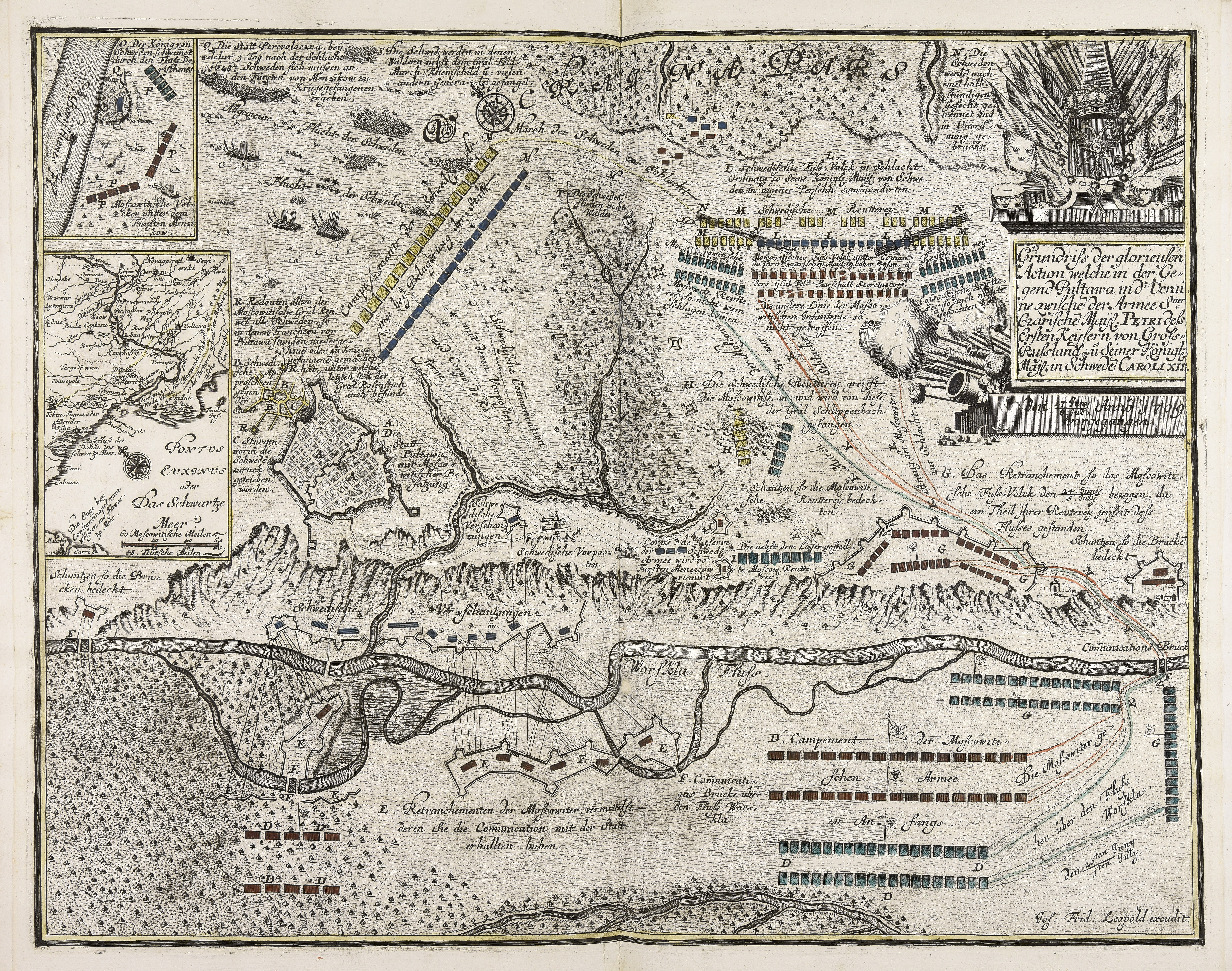 | Grundriss der glorieusen Action welche in der Gegend Pultawa in d'Ucraine zwische der Armee Sner Czarische Ma¨yl. Petri dess Ersten Ke¨ysern von Gross Russland u. seiner Königl. Majl. in Schwede Caroli XII den 27 Juni-8 Juli annô 1709 vorgegangen |
