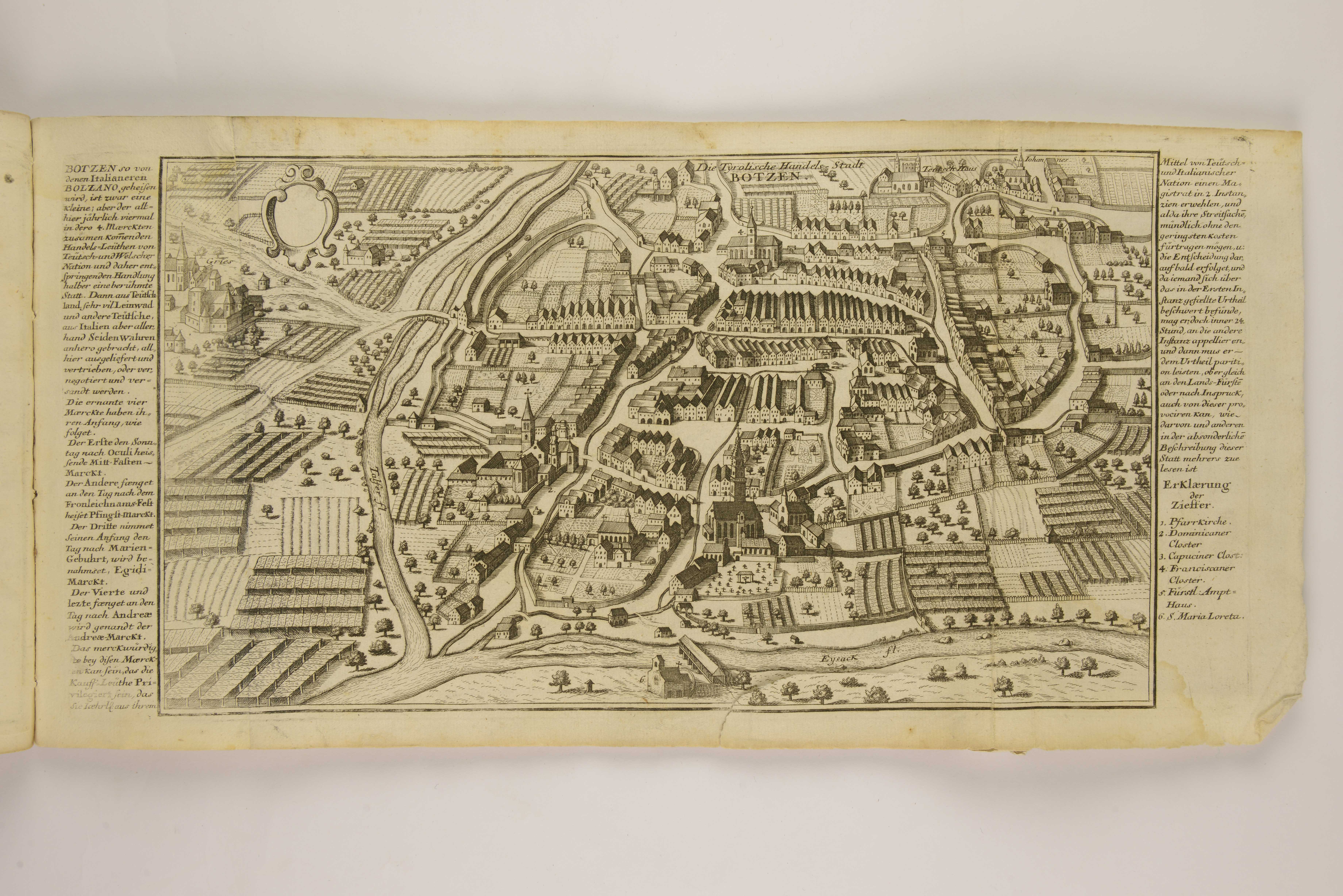 Calcografia; 171x365 mm. Pubblicata in Johann Stridbeck, Curioses Staats und Kriegs-Theatrum dermahliger Begebenheiten im Tyrol ..., Augsburg, Johann Stridbeck, [tra il 1711 e il 1714]