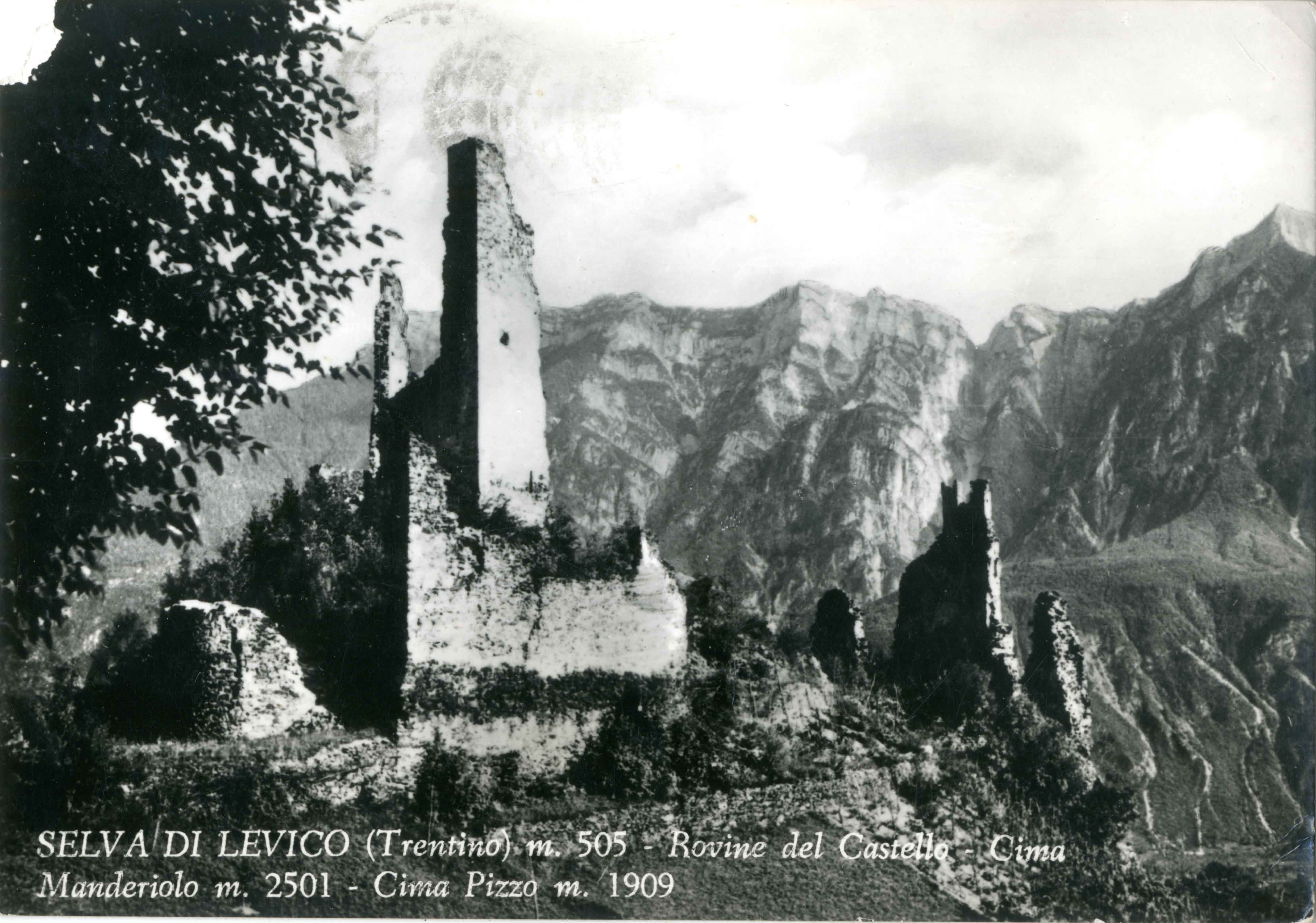 | Selva di Levico (Trentino) m. 505 – Rovine del Castello – Cima Manderiolo m. 2501 – Cimpa Pizzo m. 1909 |
