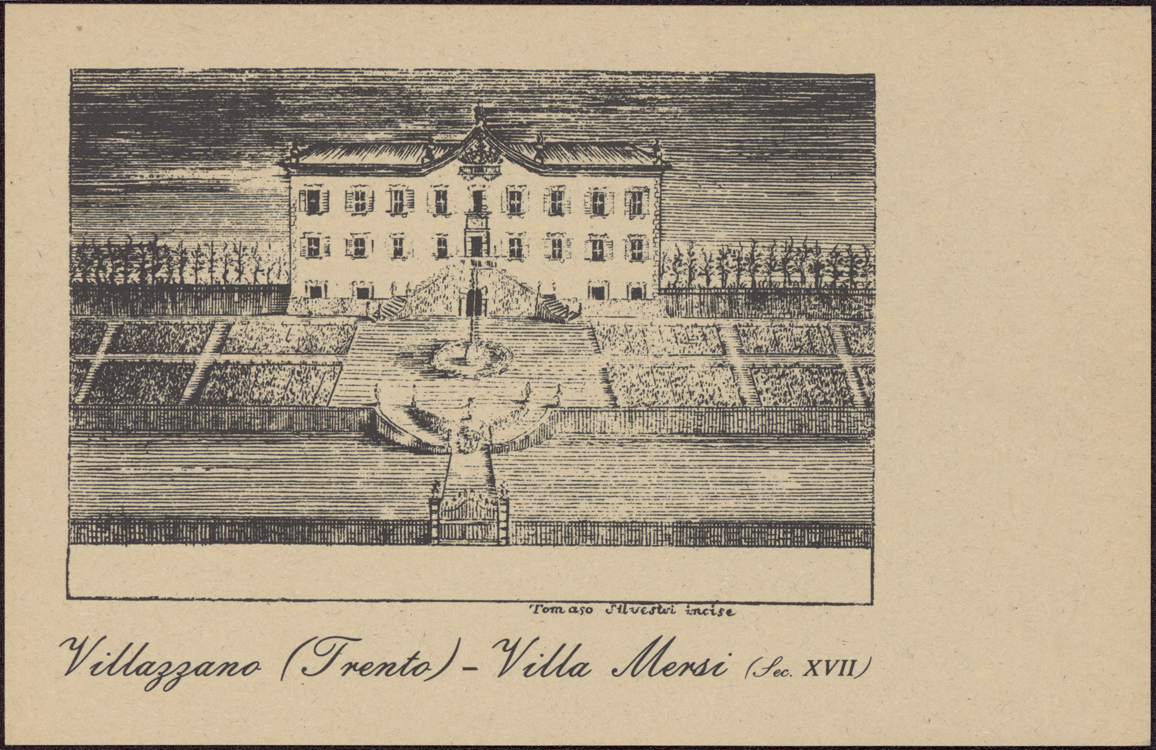 91x140 mm, b/n. Sul verso: Riproduzione da incisione di Tomaso Silvestri. Pubblicata da SFT (s.l.), da Litografia Effe e Erre (Trento) e da Cassa rurale di Villazzano (Villazzano) probabilmente tra il 1980 e il 1990