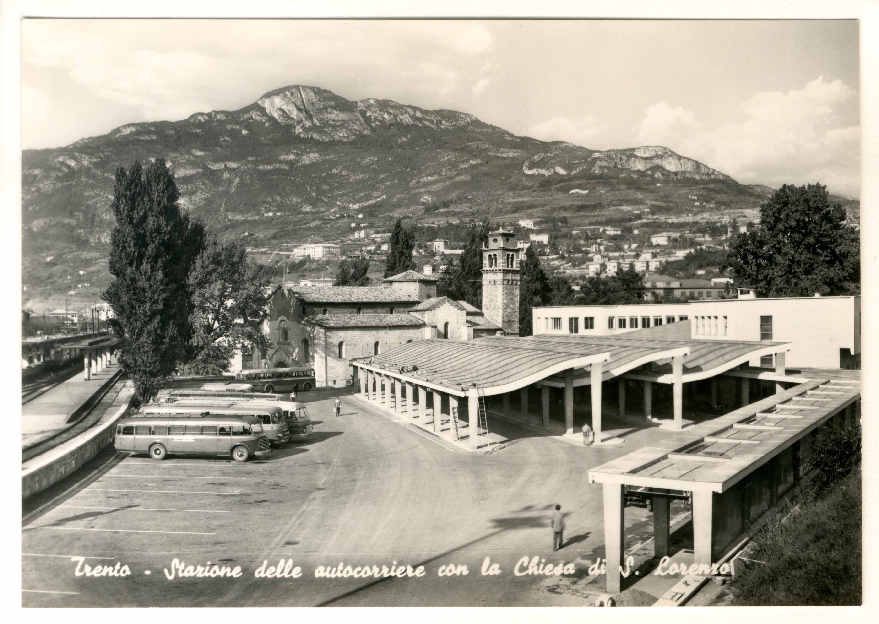 Trento - Stazione delle autocorriere con la Chiesa di S. Lorenzo