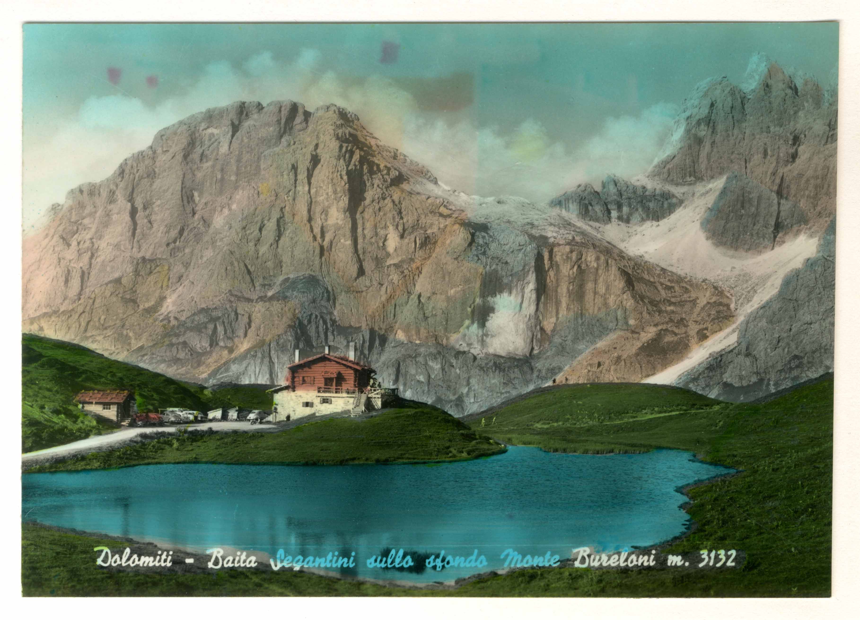 | Dolomiti - Baita Segantini sullo sfondo Monte Bureloni m. 3132 |