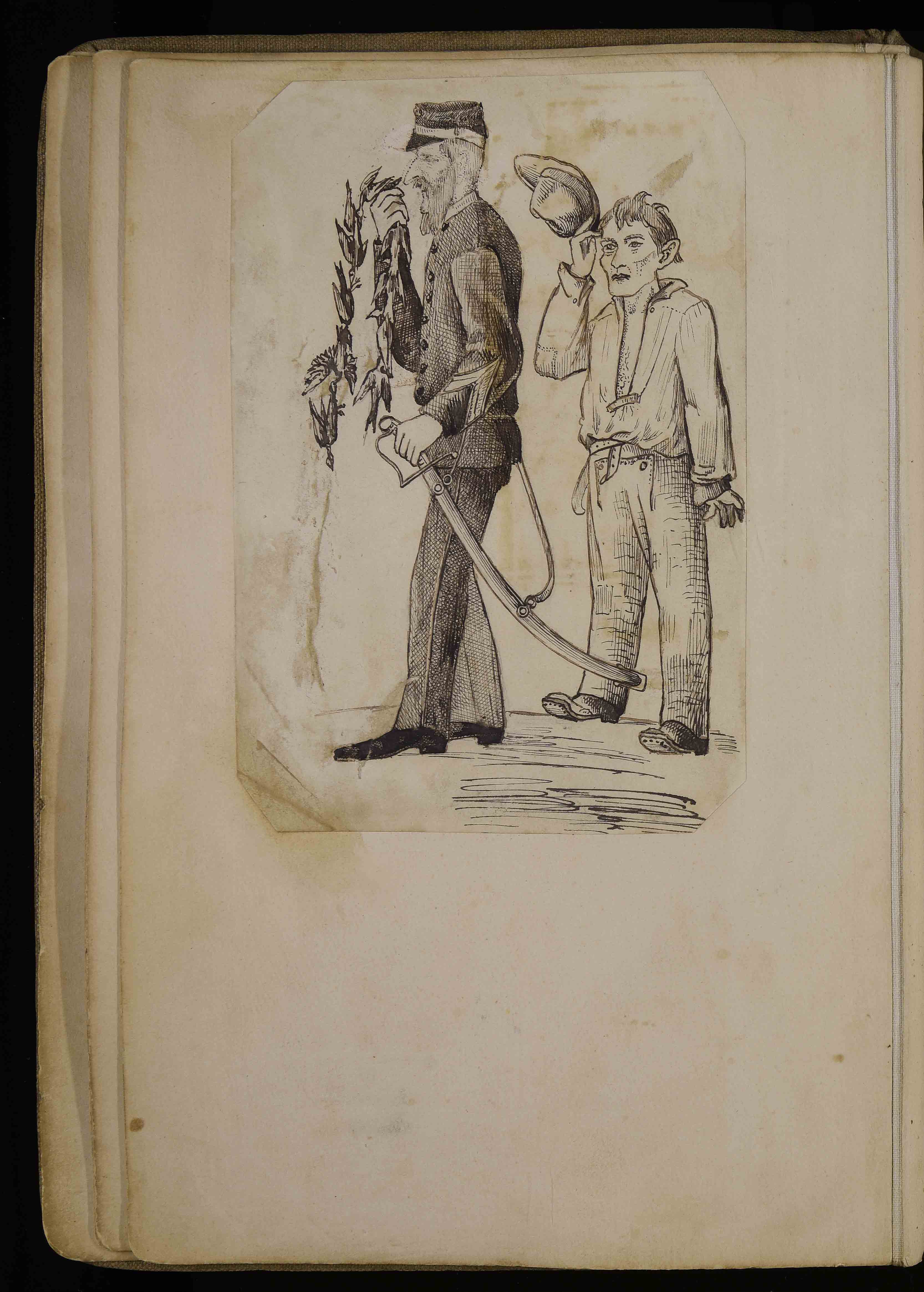 | Manoscritto cartaceo, 274x175 mm. In BCT1-3171, Albo di bozzetti caricature e disegni di vario genere di Giuseppe Mor, ca. 1885-1913, c. 4v |