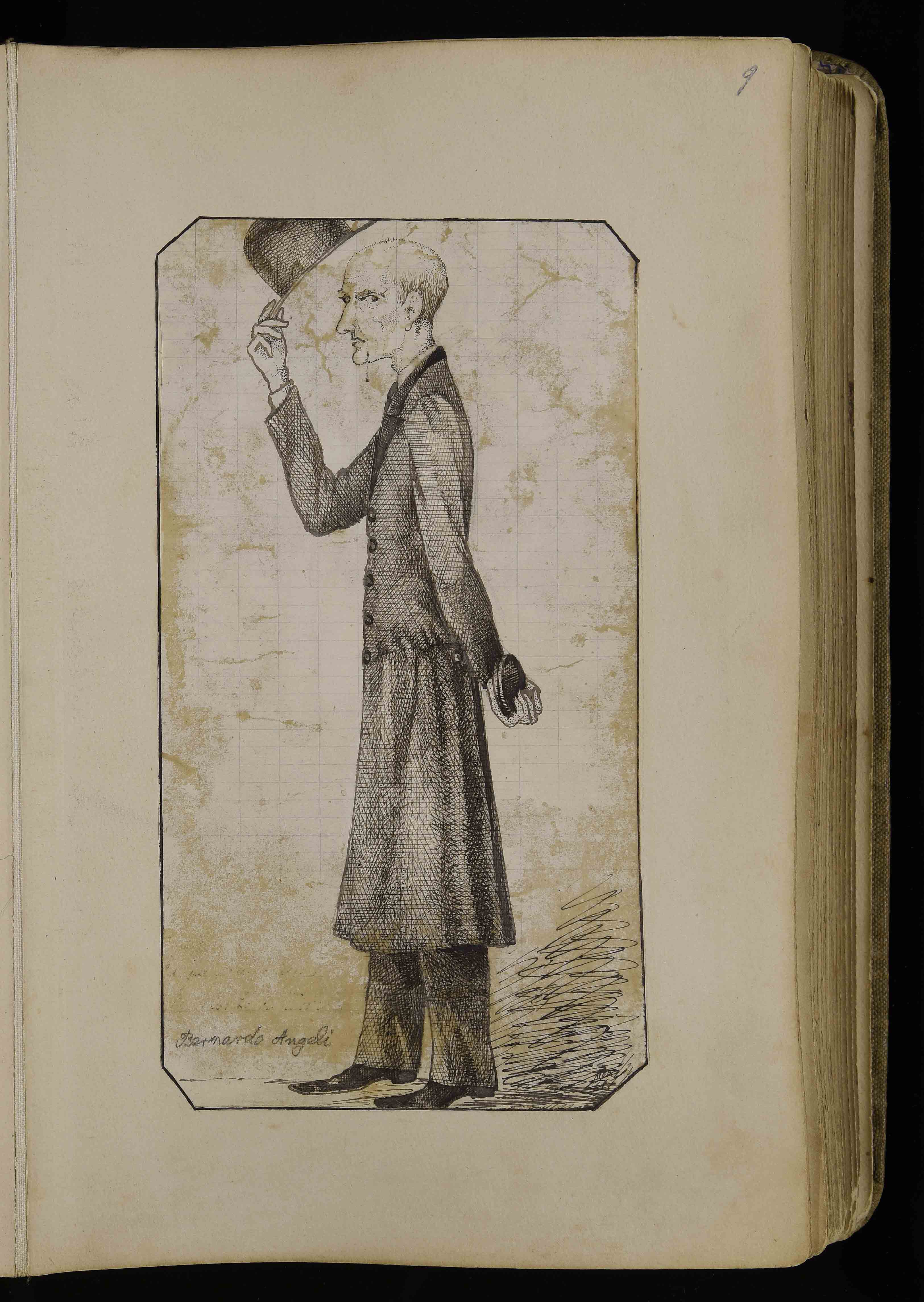 | Manoscritto cartaceo, 274x175 mm. In BCT1-3171, Albo di bozzetti caricature e disegni di vario genere di Giuseppe Mor, ca. 1885-1913, c. 9r |