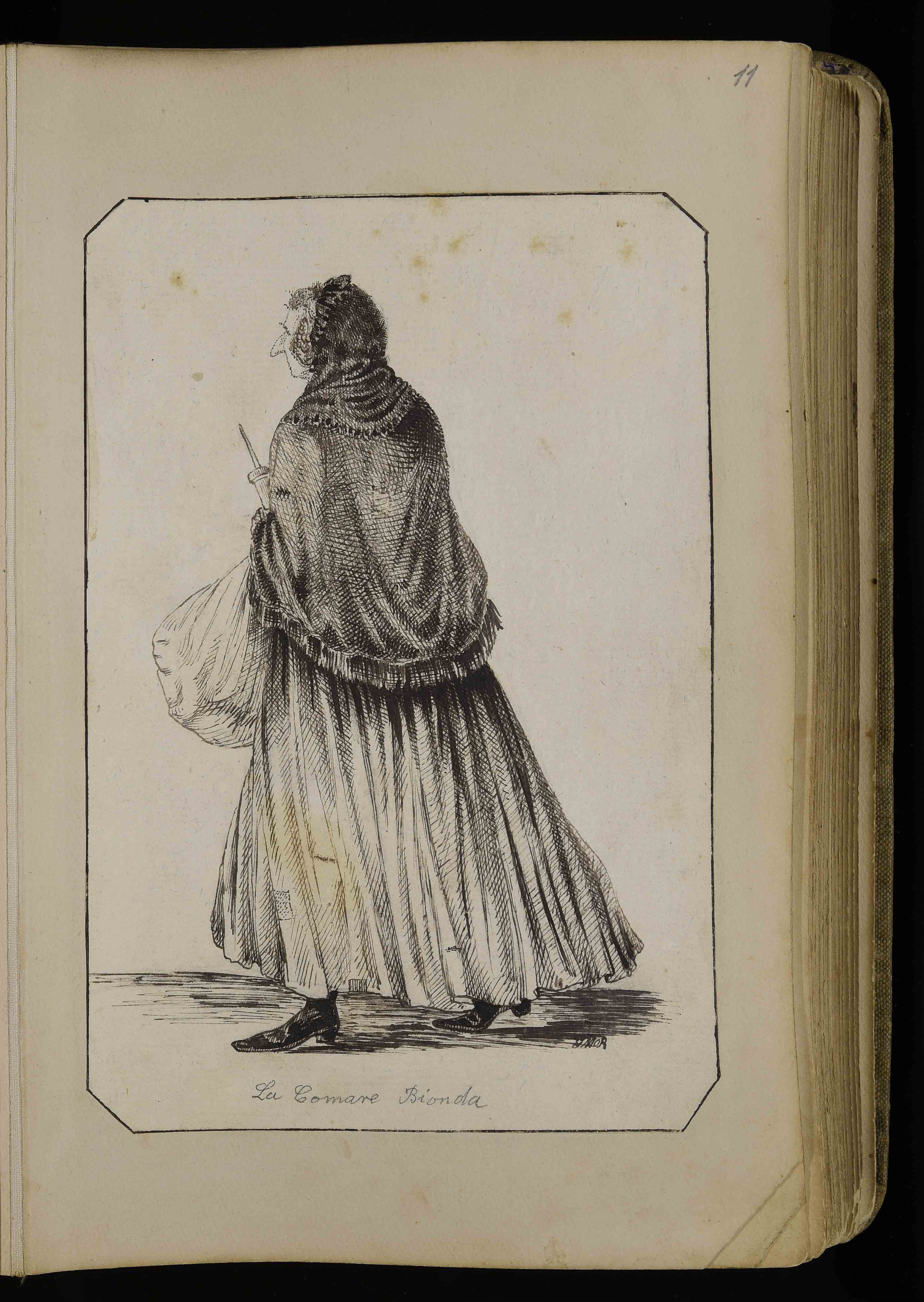 | Manoscritto cartaceo, 274x175 mm. In BCT1-3171, Albo di bozzetti caricature e disegni di vario genere di Giuseppe Mor, ca. 1885-1913, c. 11r |