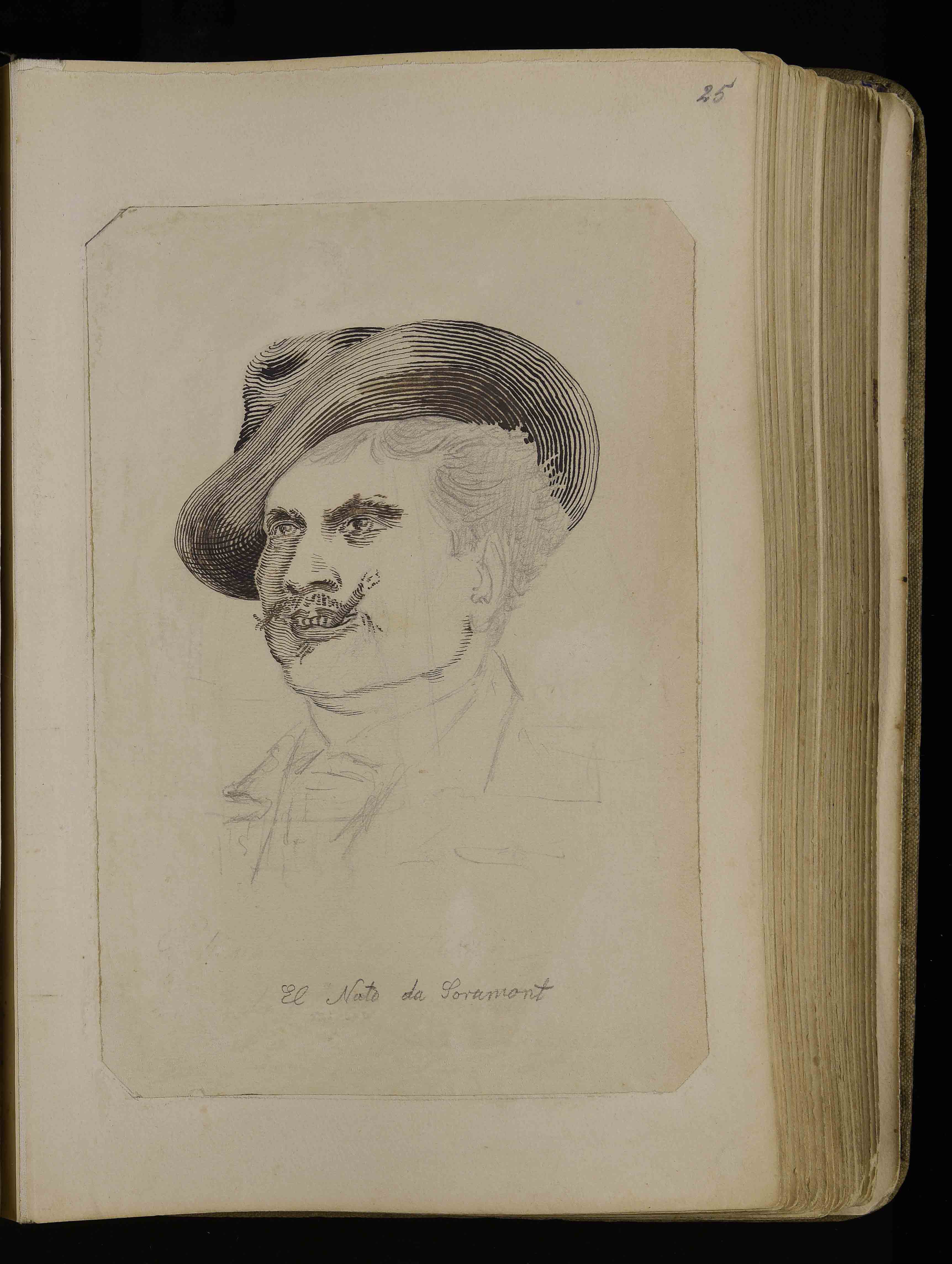 | Manoscritto cartaceo, 274x175 mm. In BCT1-3171, Albo di bozzetti caricature e disegni di vario genere di Giuseppe Mor, ca. 1885-1913, c. 25r |