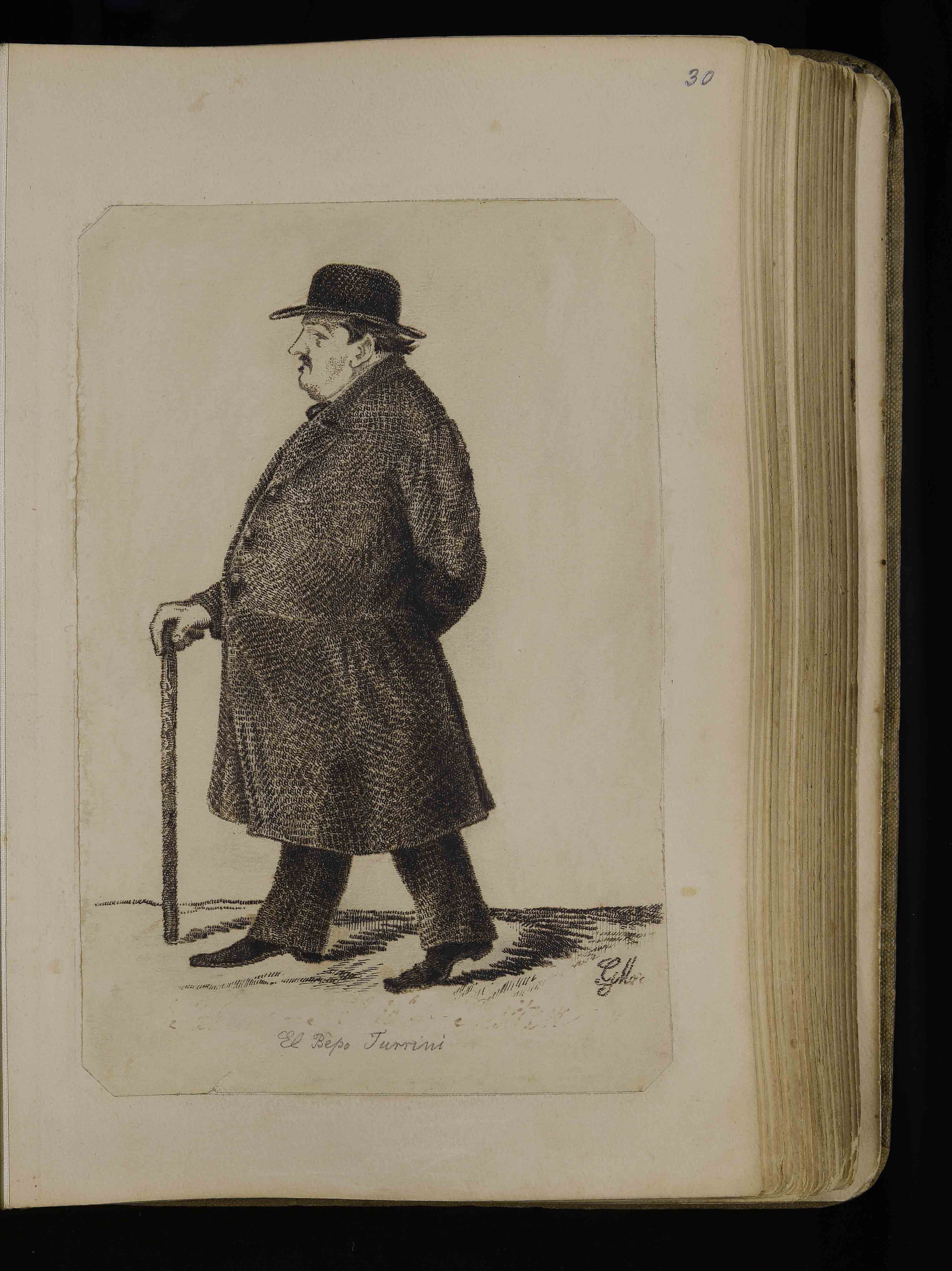 | Manoscritto cartaceo, 274x175 mm. In BCT1-3171, Albo di bozzetti caricature e disegni di vario genere di Giuseppe Mor, ca. 1885-1913, c. 30r |