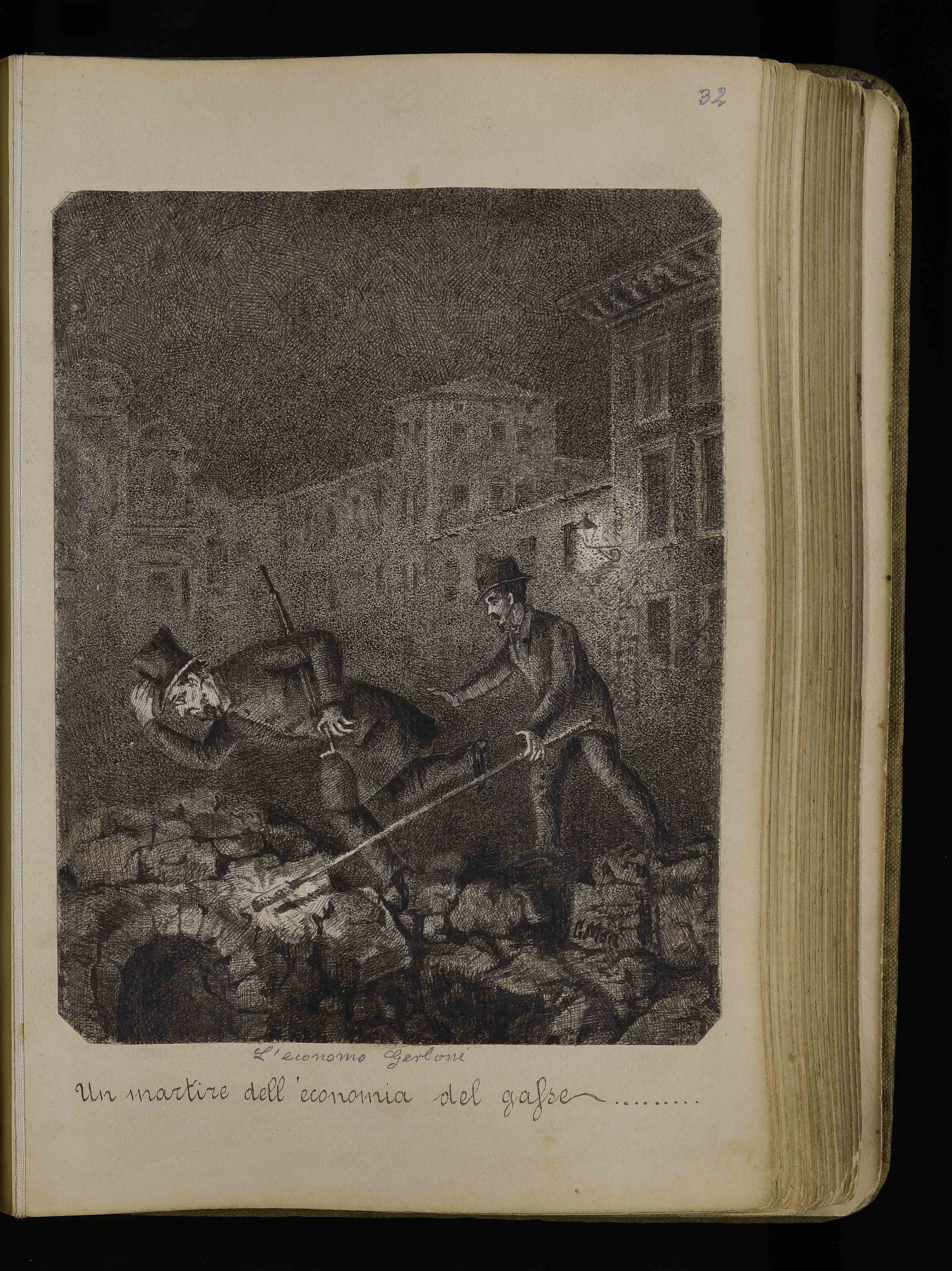 | Manoscritto cartaceo, 274x175 mm. In BCT1-3171, Albo di bozzetti caricature e disegni di vario genere di Giuseppe Mor, ca. 1885-1913, c. 32r |
