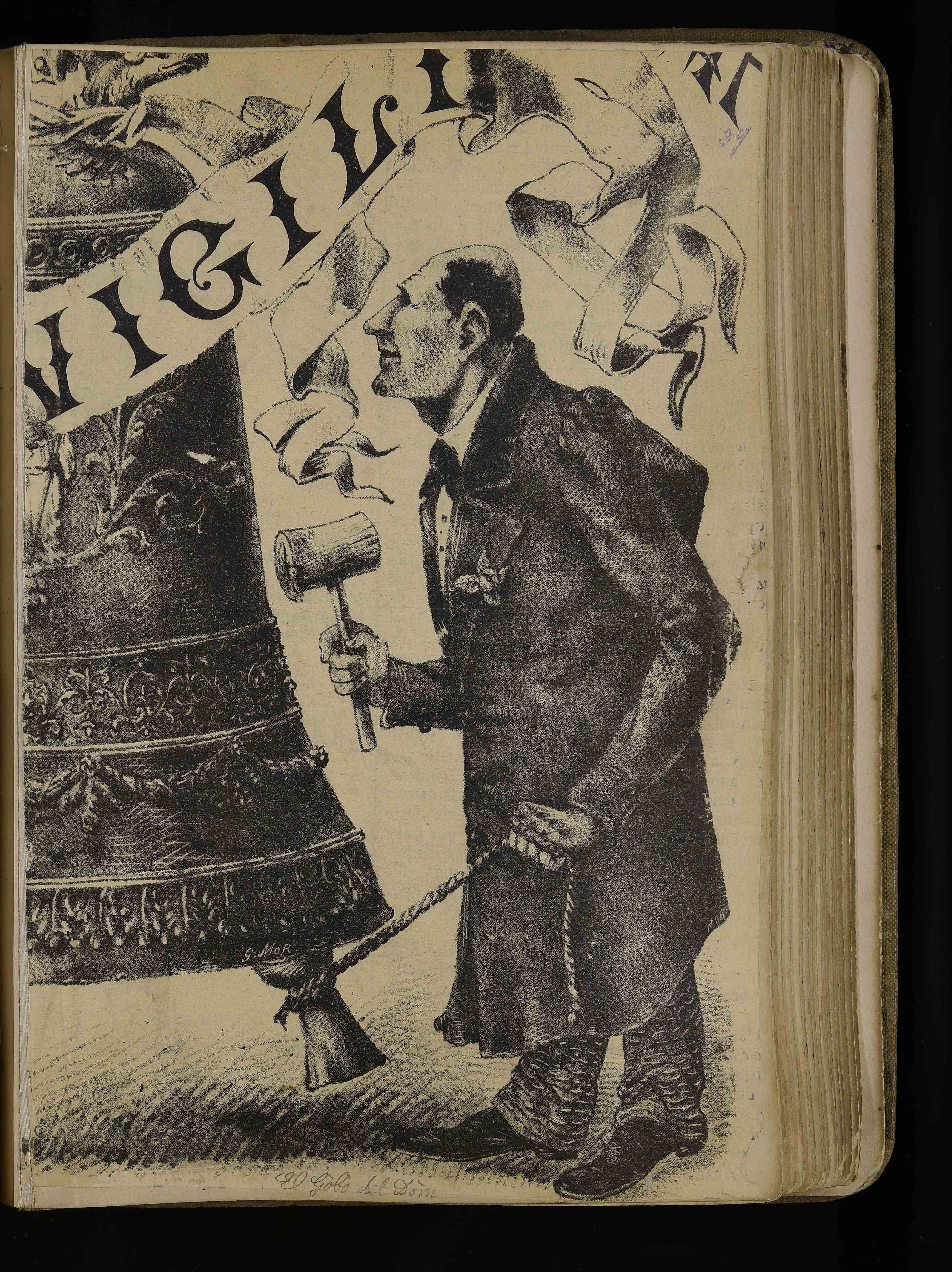 | Manoscritto cartaceo, 274x175 mm. In BCT1-3171, Albo di bozzetti caricature e disegni di vario genere di Giuseppe Mor, ca. 1885-1913, c. 39r |