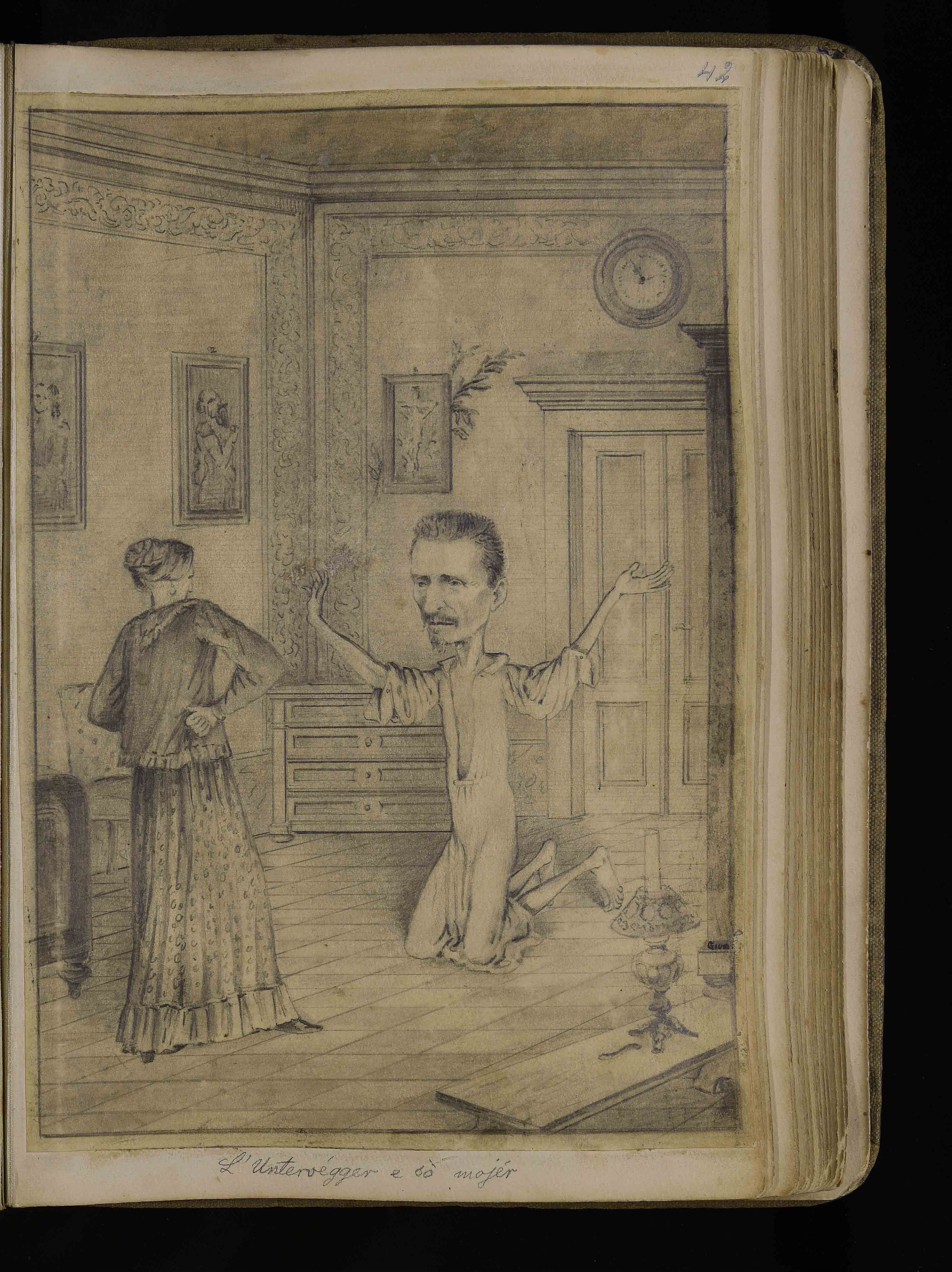 | Manoscritto cartaceo, 274x175 mm. In BCT1-3171, Albo di bozzetti caricature e disegni di vario genere di Giuseppe Mor, ca. 1885-1913, c. 42r |