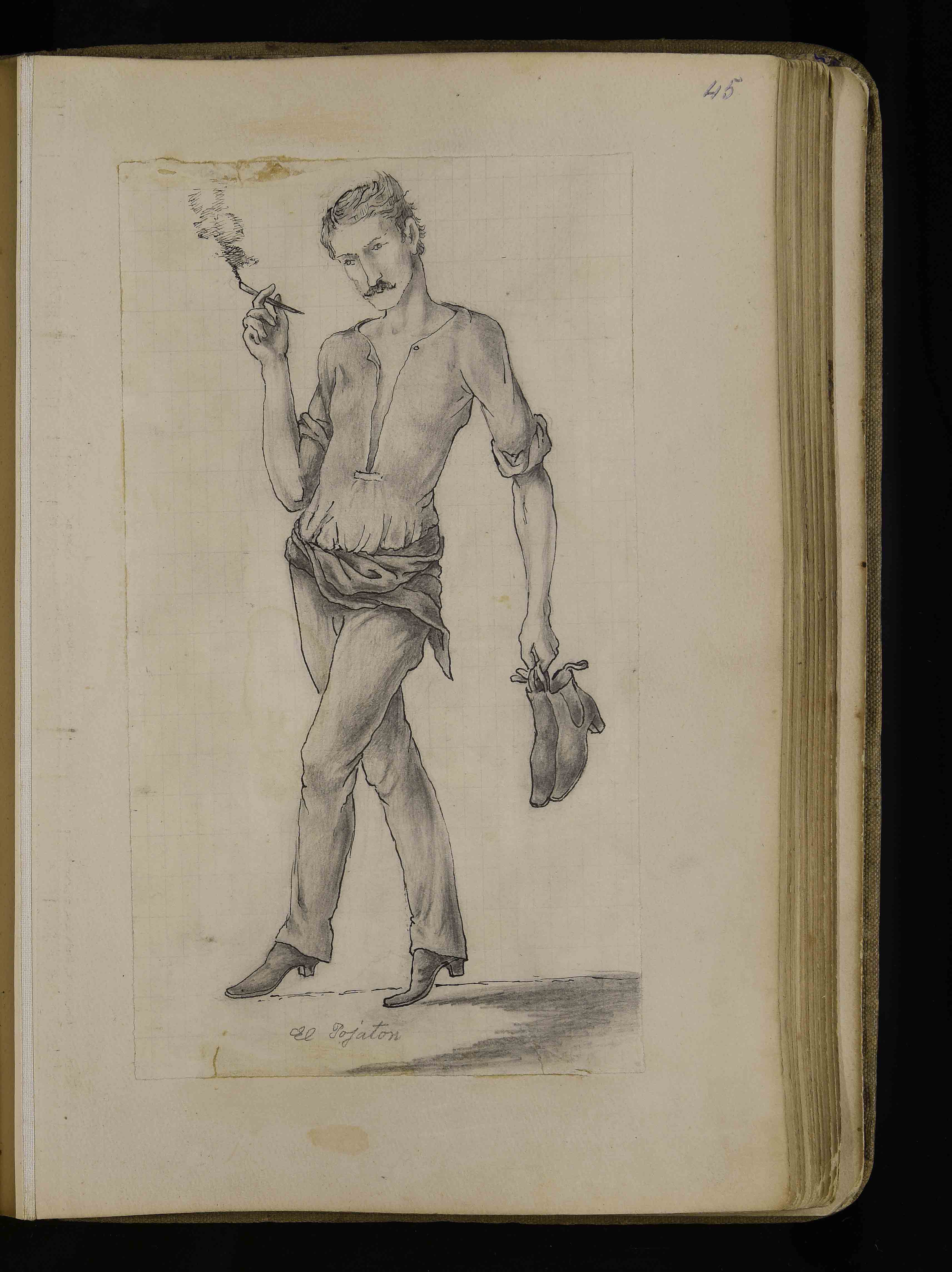 | Manoscritto cartaceo, 274x175 mm. In BCT1-3171, Albo di bozzetti caricature e disegni di vario genere di Giuseppe Mor, ca. 1885-1913, c. 45r |