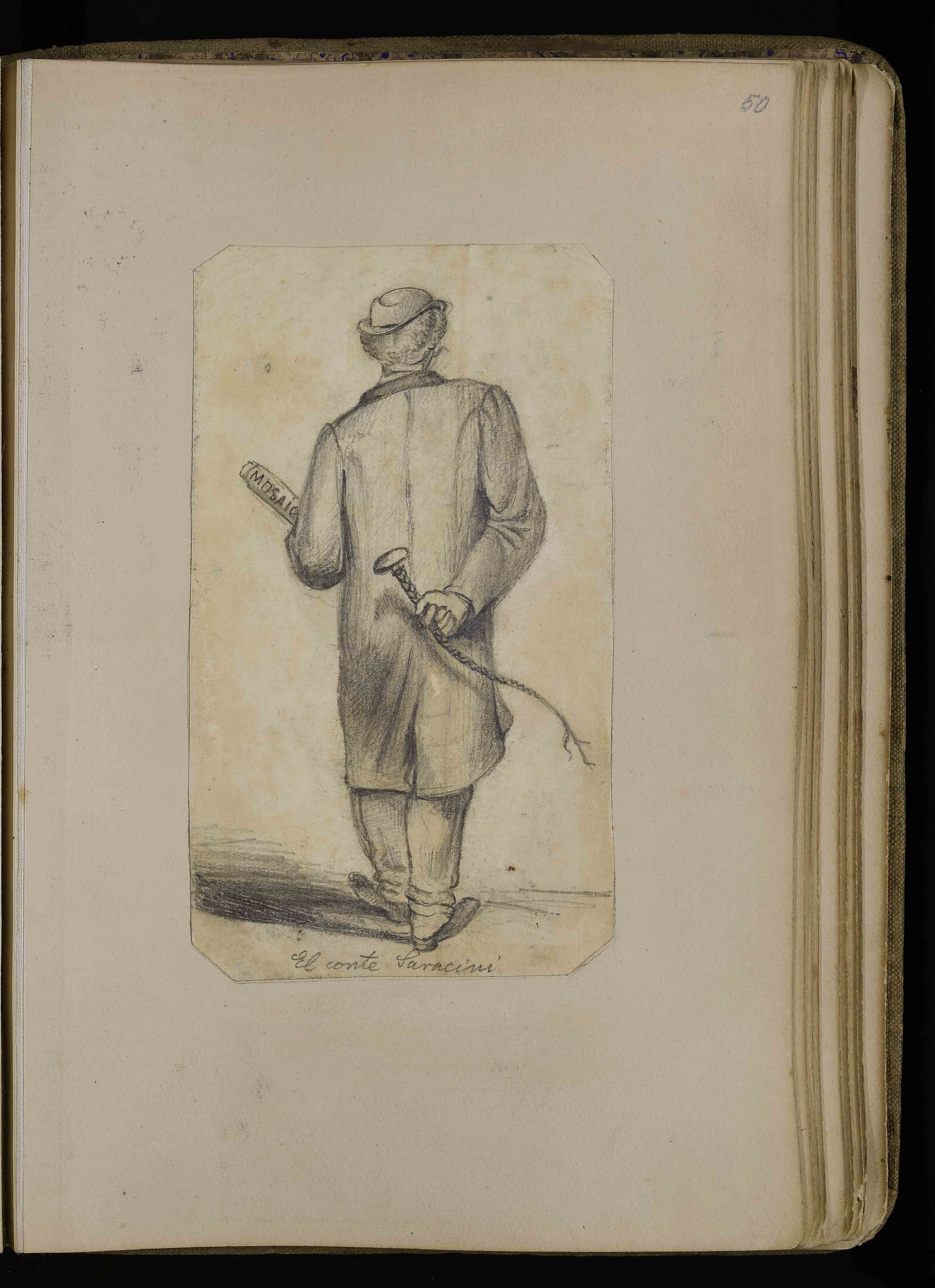 | Manoscritto cartaceo, 274x175 mm. In BCT1-3171, Albo di bozzetti caricature e disegni di vario genere di Giuseppe Mor, ca. 1885-1913, c. 50r |