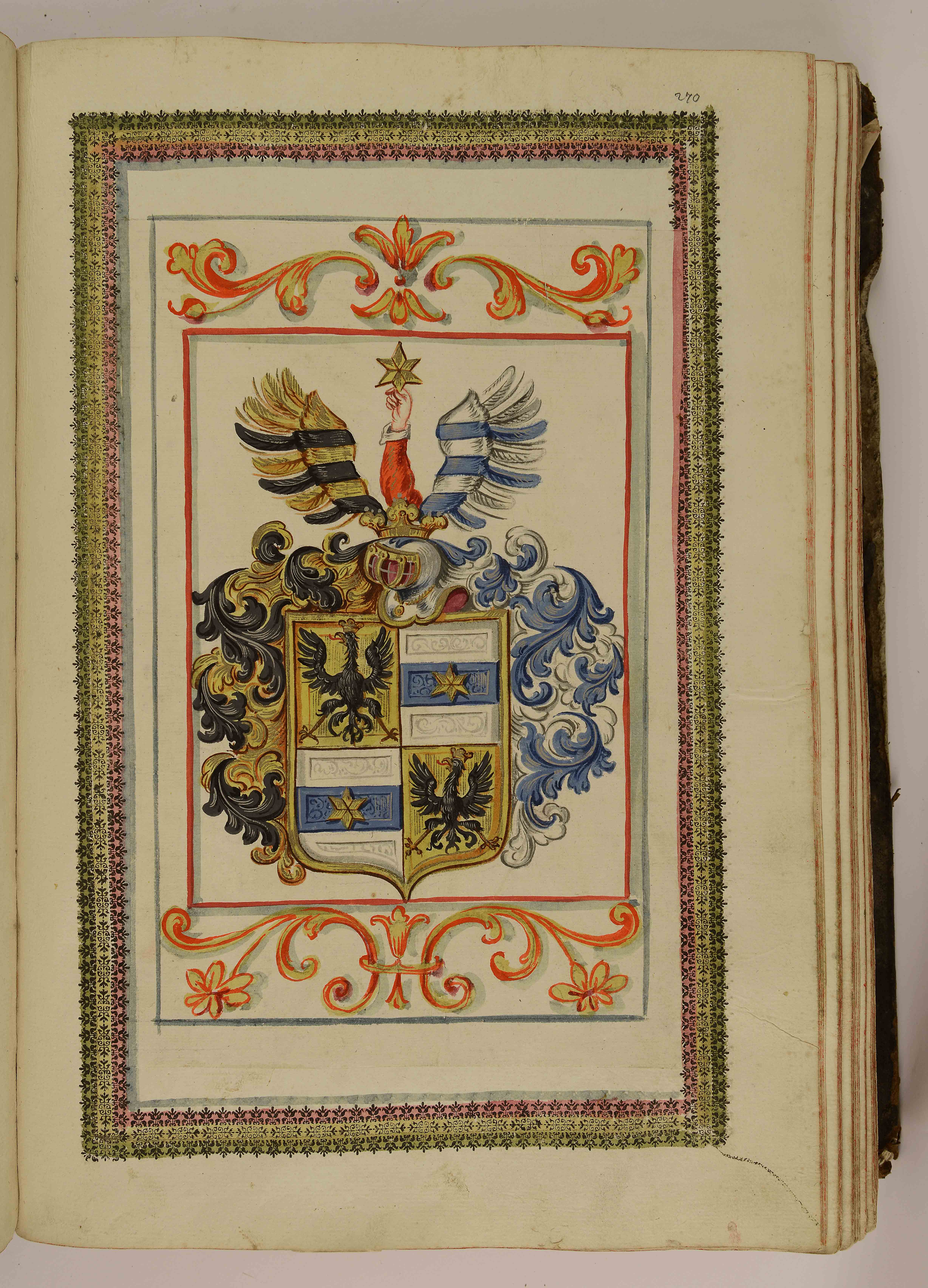 Manoscritto cartaceo, 415x285 mm. In BCT1-1301, Matricula nobiliarium familiarum Principatus Tridenti, redatta da Filippo Francesco Saverio Manci su incarico del principe vescovo Domenico Antonio Thun. Per notizie sulla famiglia cfr. Tabarelli de Fatis - Borrelli 2004 , pp. 160-161