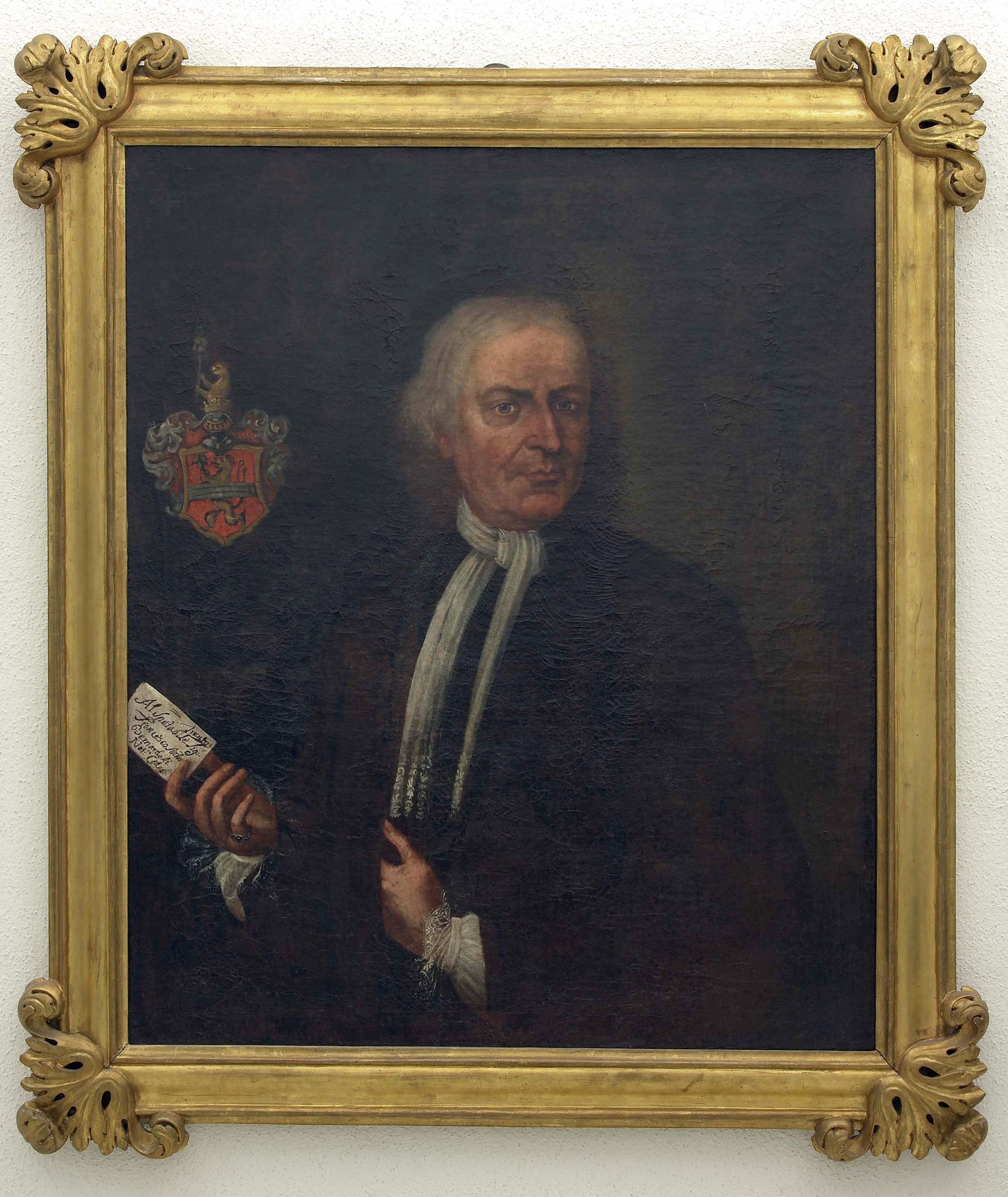 89x75 cm; olio su tela. L'attribuzione del soggetto si ricava dal cartiglio che tiene in mano il personaggio ritratto. Sulla tela è visibile lo stemma della famiglia Bernardelli (Tabarelli de Fatis - Borrelli 2004 p. 45 ), probabile committente dell'opera.