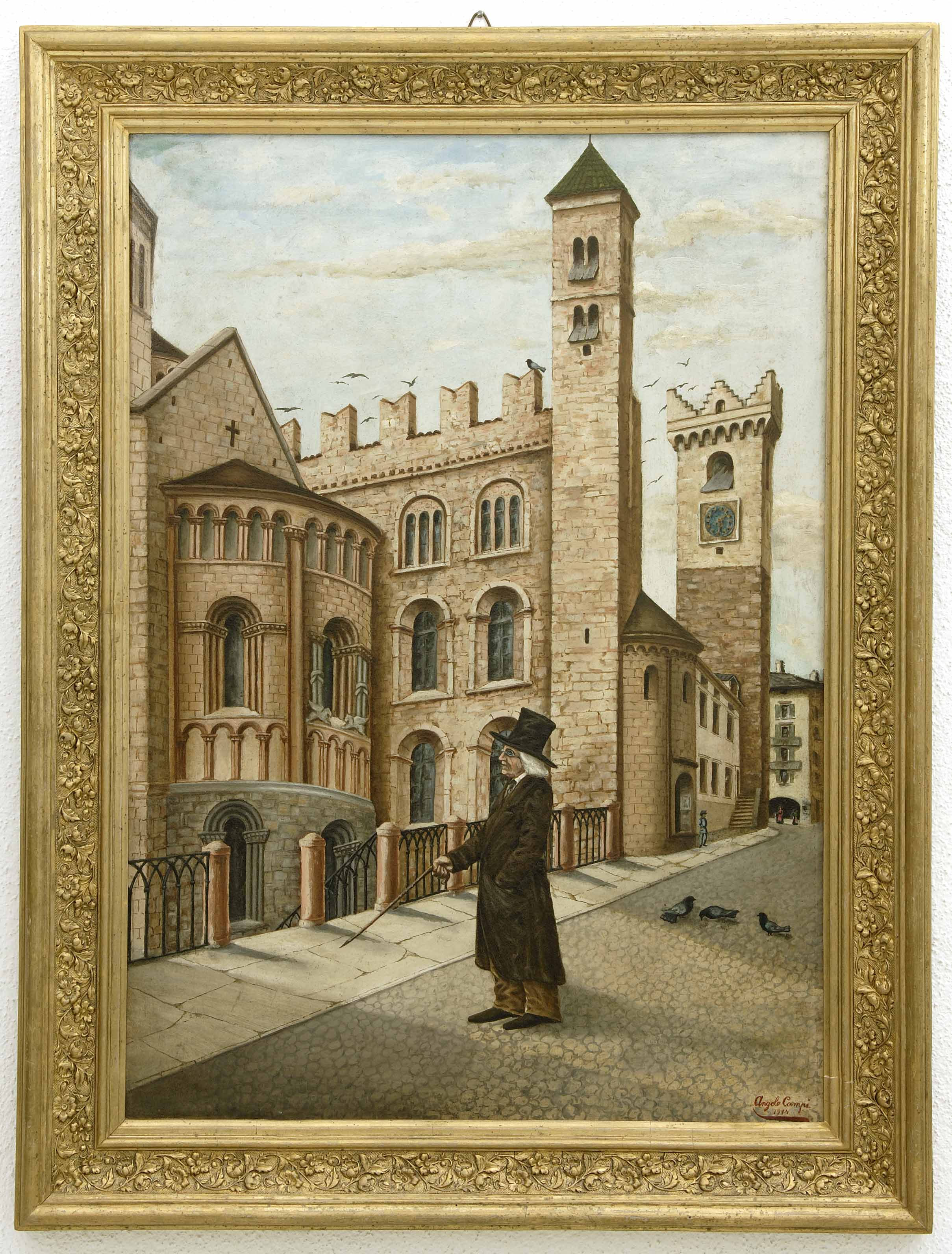 68x48,5 cm; olio su cartone. Sul retro, etichetta con informazioni sul personaggio raffigurato: “Il personaggio raffigurato è quasi certamente Bonifacio Garbari, el poeta Garbari,… un paranoico che ogni giorno, vestito di nero, con la canna, il cilindro, gli occhiali a stanghetta, i capelli bianchi fluenti sul collo, veniva in piazza del Duomo...pronunciava parole misteriose”, cfr. Cetto 1956 , p. 126