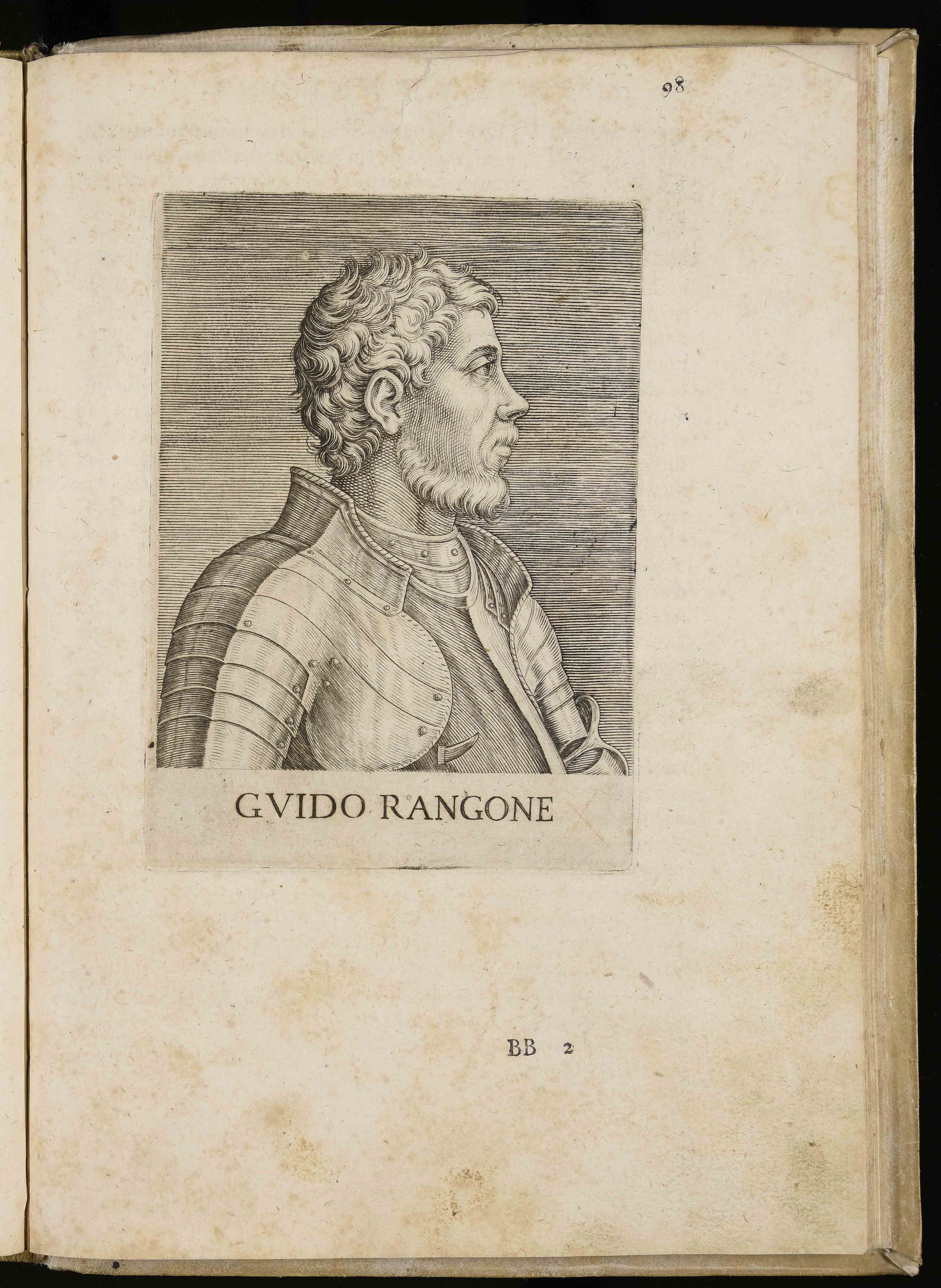 129x95 mm; incisione di Aliprando Caprioli, in Aliprando Caprioli, Ritratti di cento capitani illustri con li lor fatti in guerra, Roma, Domenico Gigliotti, 1596 (BDT 14596)