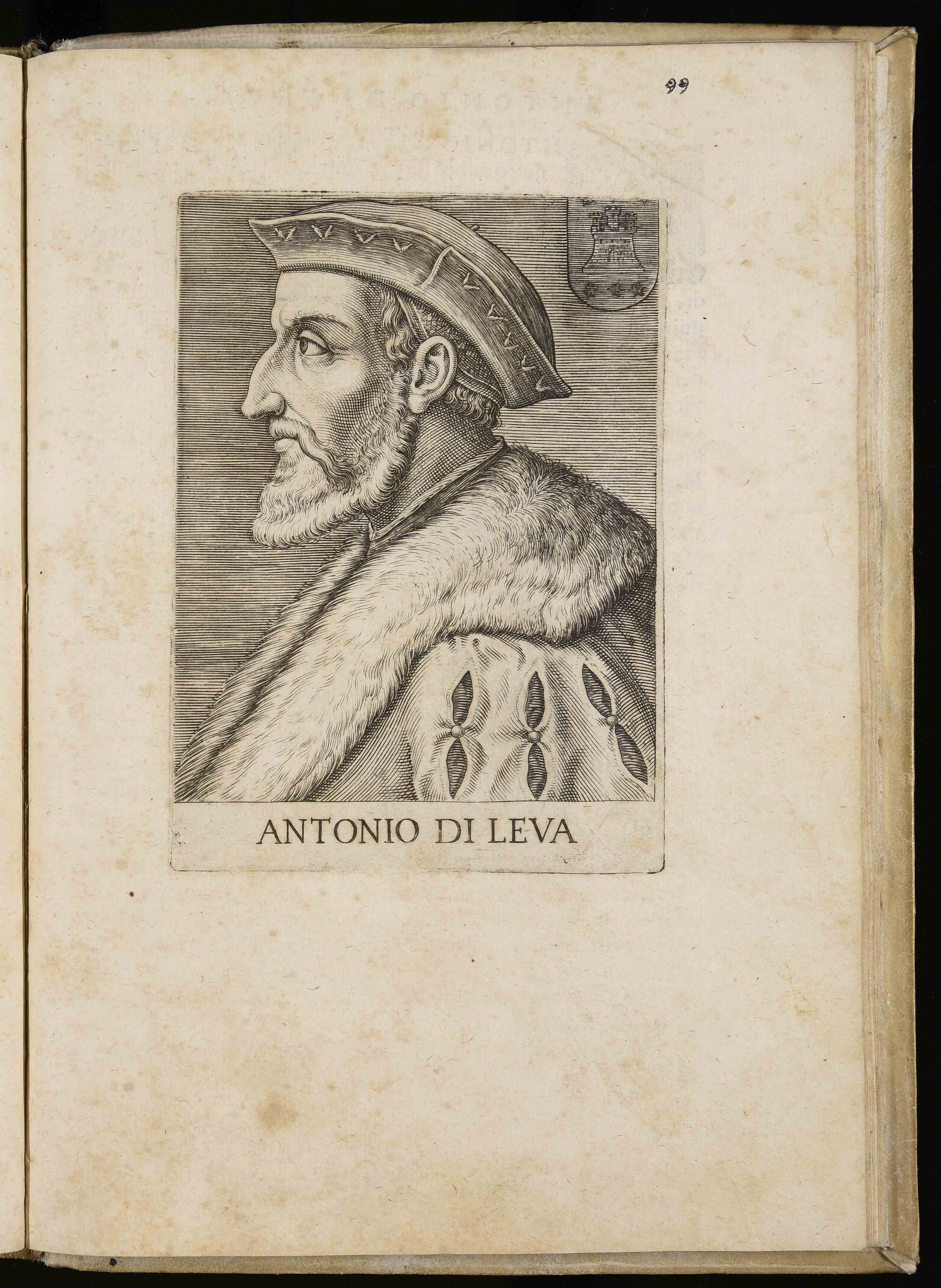 129x95 mm; incisione di Aliprando Caprioli, in Aliprando Caprioli, Ritratti di cento capitani illustri con li lor fatti in guerra, Roma, Domenico Gigliotti, 1596 (BDT 14596)