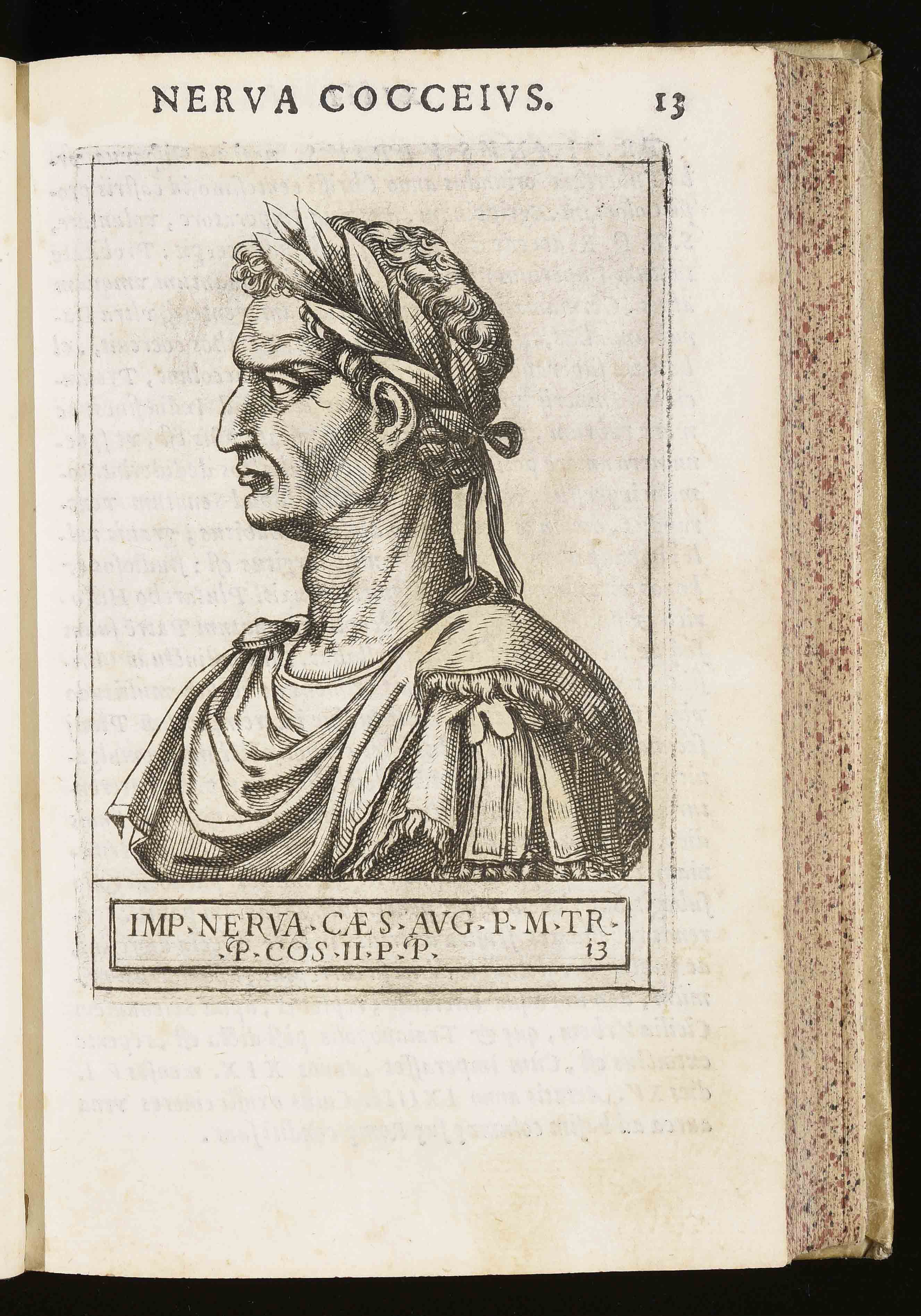 Nerva Cocceius. Imp. Nerva. Caes. Aug. P. M. Tr. P. Cos. II. P. P.