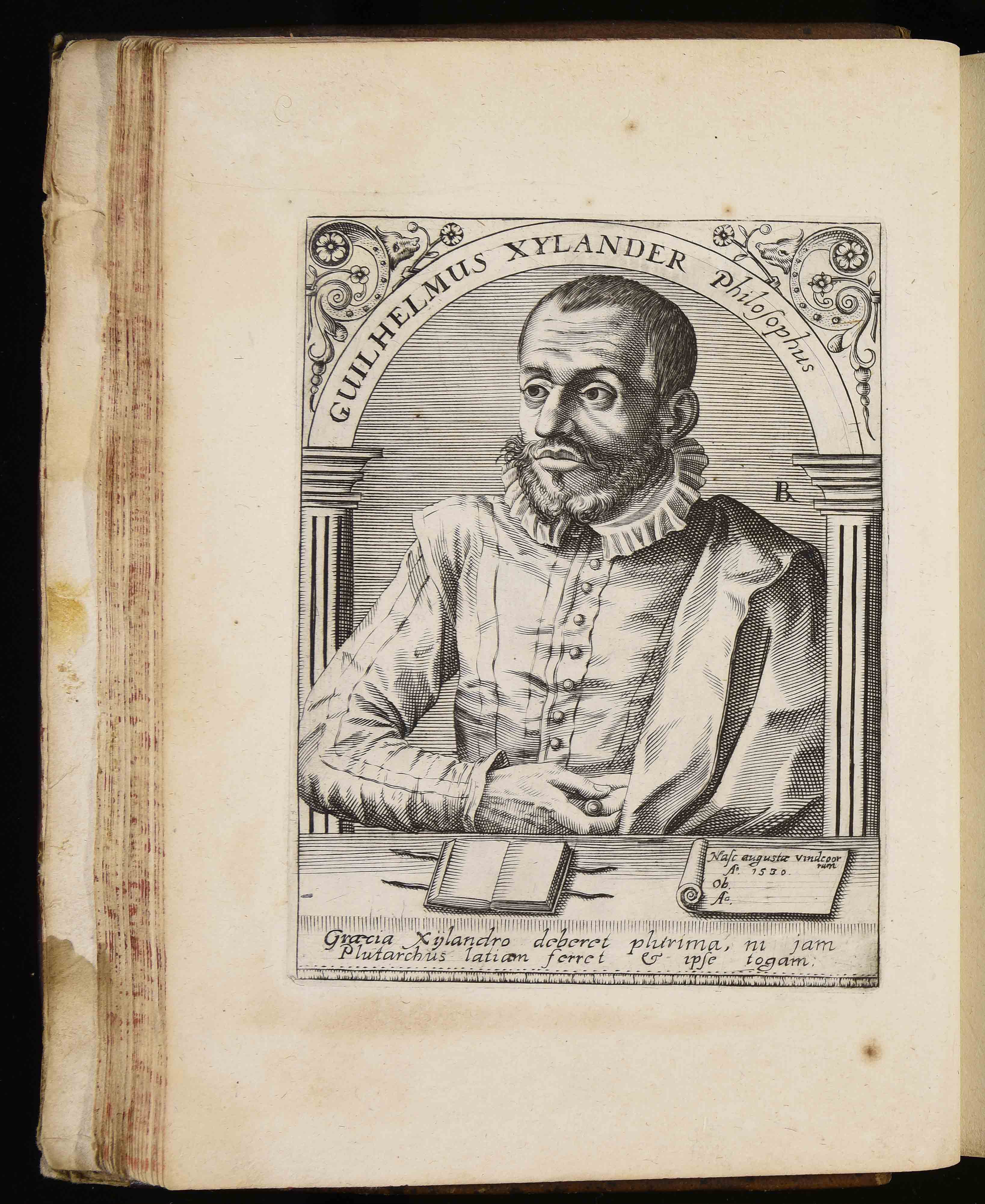 | Guilhelmus Xylander philosophus. Nascitur Augustae Vindeorrum a. 1530. Ob. a. Graecia Xijlandro deberet plurima ni jam Plutarchus latiam ferret et ipse togam |
