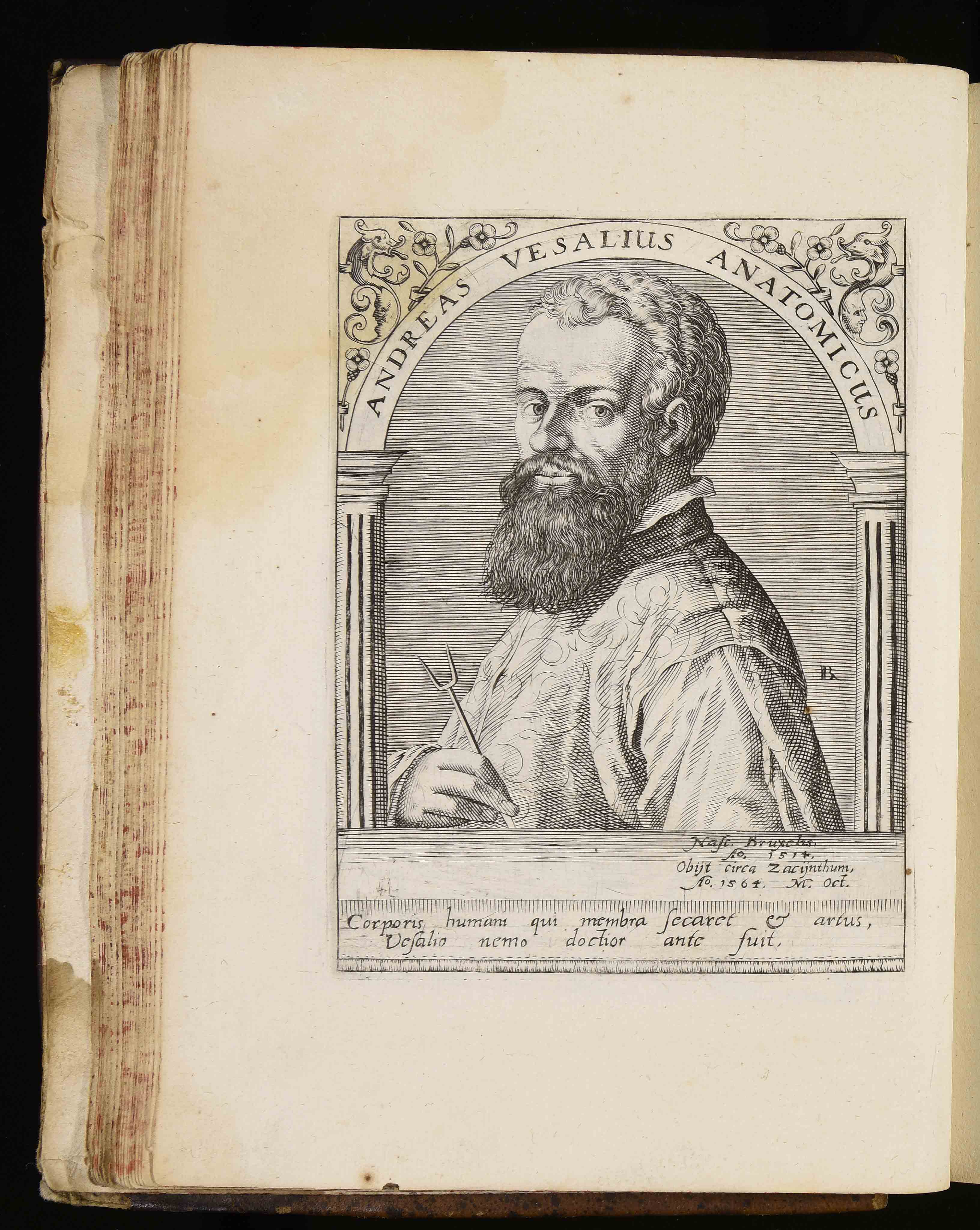 | Andreas Vesalius anatomicus. Nasc. Bruxelis. anno. 1514. Obijt circa Zacijnthum anno 1564. M. Oct. Corporis humani qui membra secaret et artus Vesalio nemo doctior ante fuit |