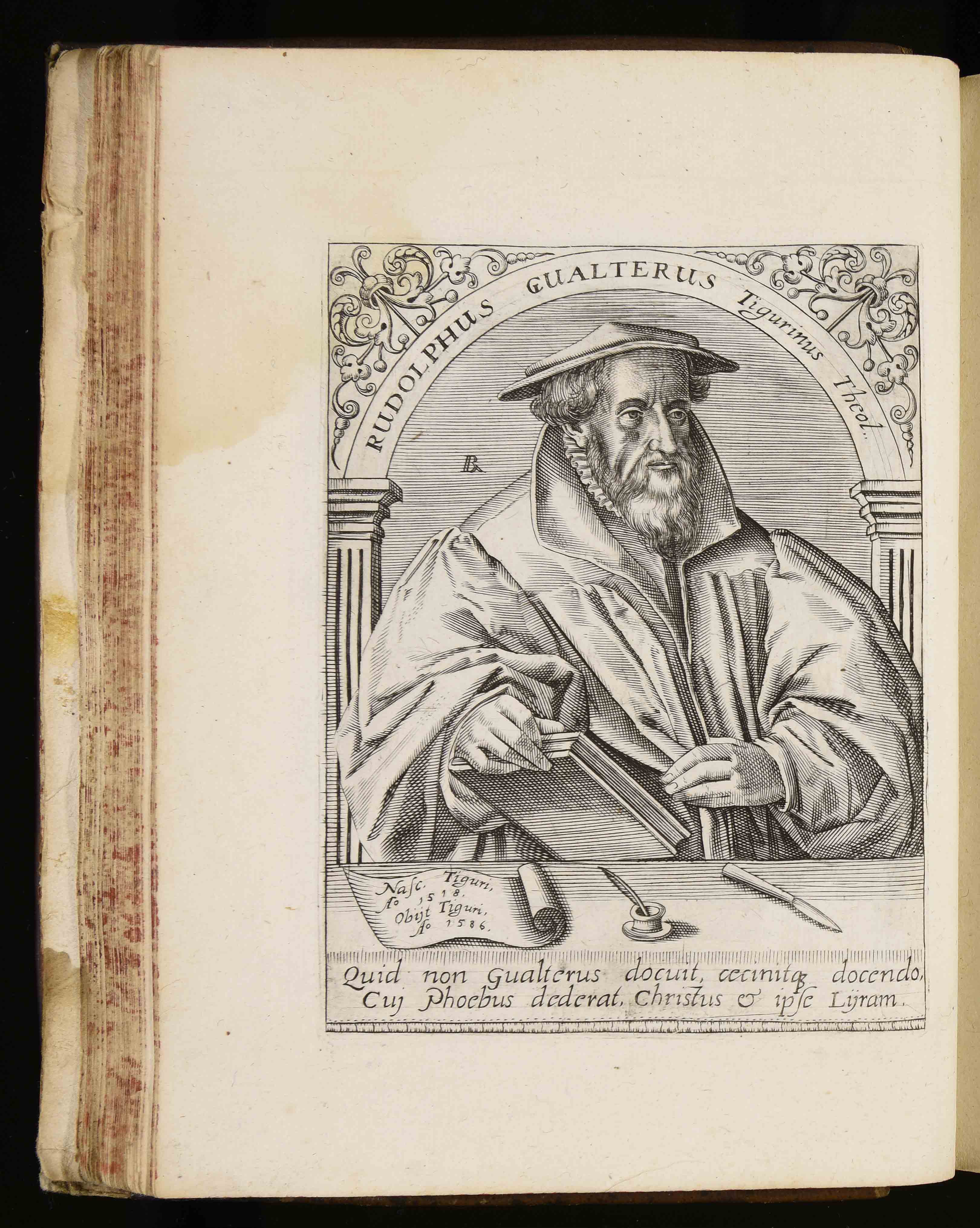 | Rudolphus Gualterus Tigurinus theol. Nascitur Tiguri anno 1518. Obijt Tiguri anno 1586. Quid non Gualterus docuit cecinitque docendo cuj Phoebus dederat Christus et ipse lijram |
