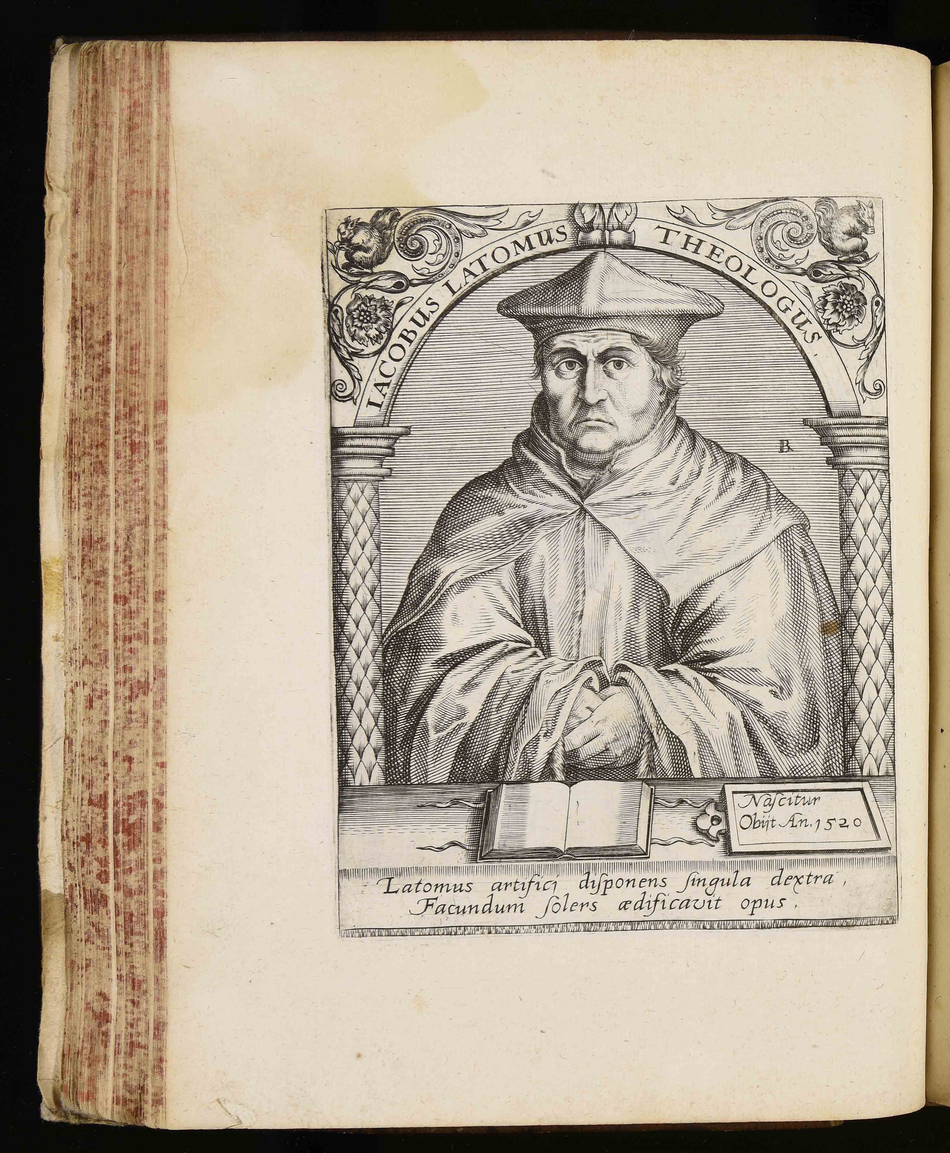 | Iacobus Latomus theologus. Nascitur. Obijt an. 1520. Latomus artifici disponens singula sextra facundum solers aedificavit opus |
