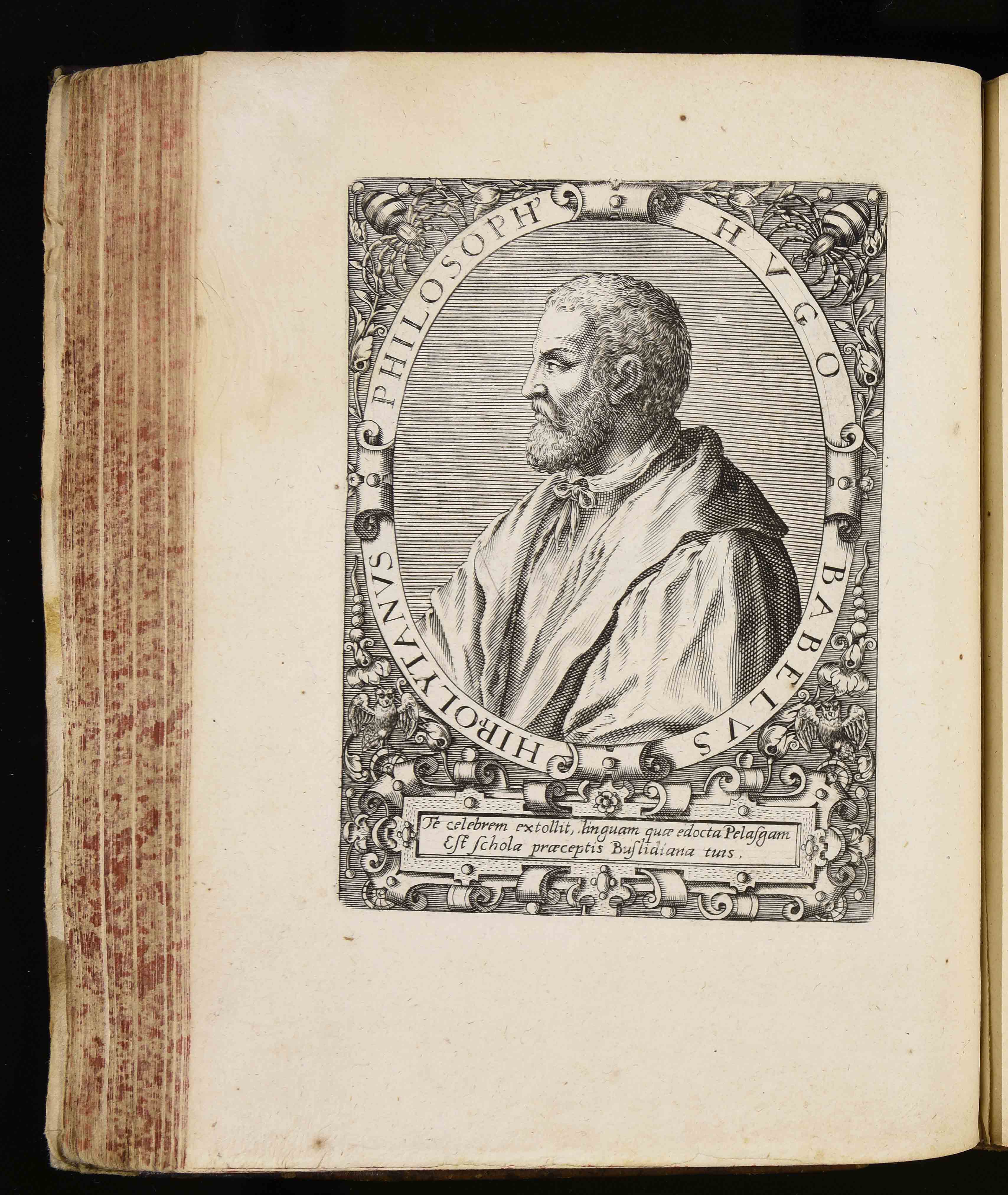 | Hugo Babelus Hippolitanus philosophus. Te celebrem extollit linguam quae edocta Pelasgam est schola praeceptis Buslidiana tuis |