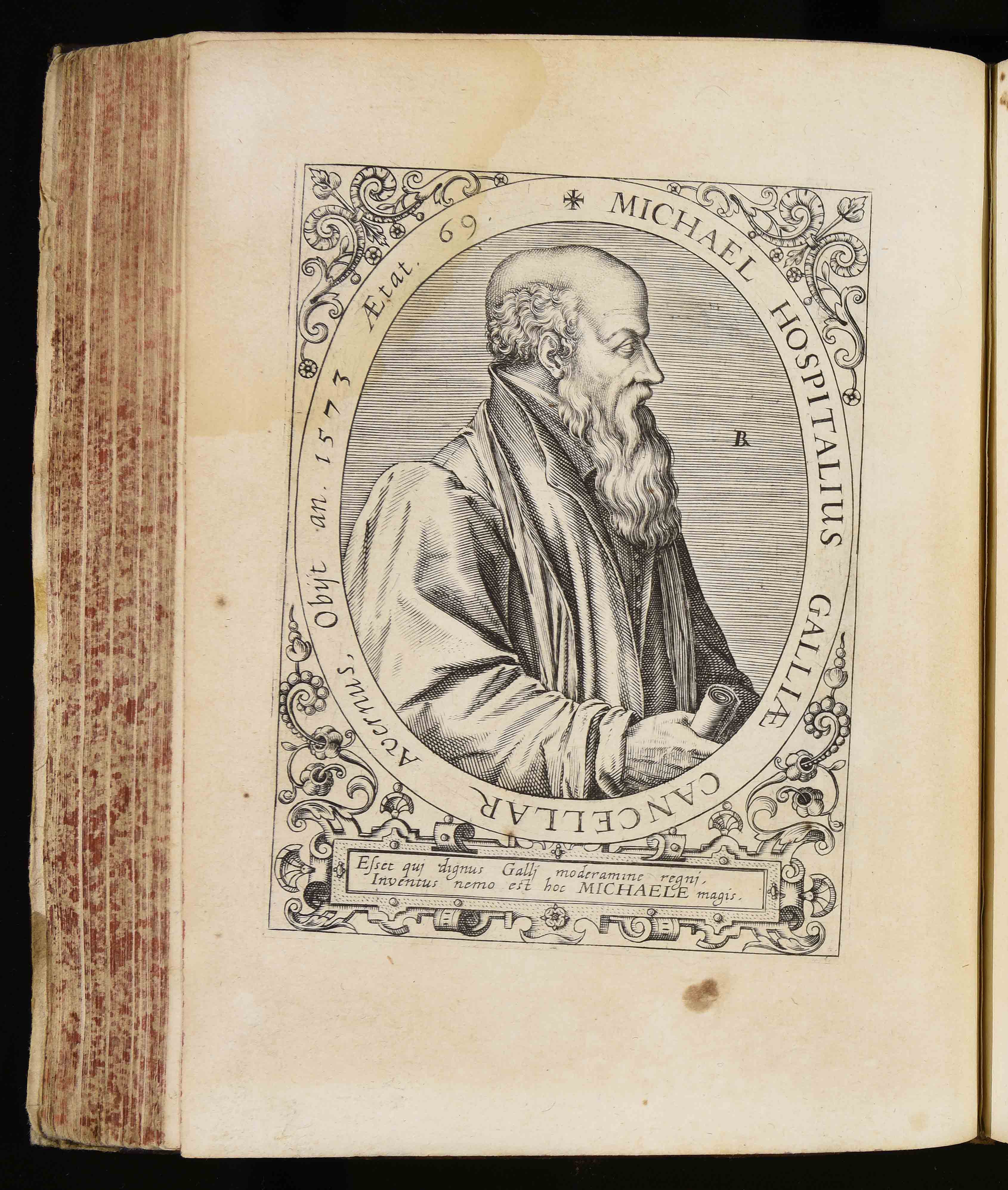 | Michael Hospitalius Galliae cancellor. Avernus Obijt an. 1573 Aetat. 69. Esset qui dignus Galli moderamine regni inventus nemo est hoc Michaele magis |