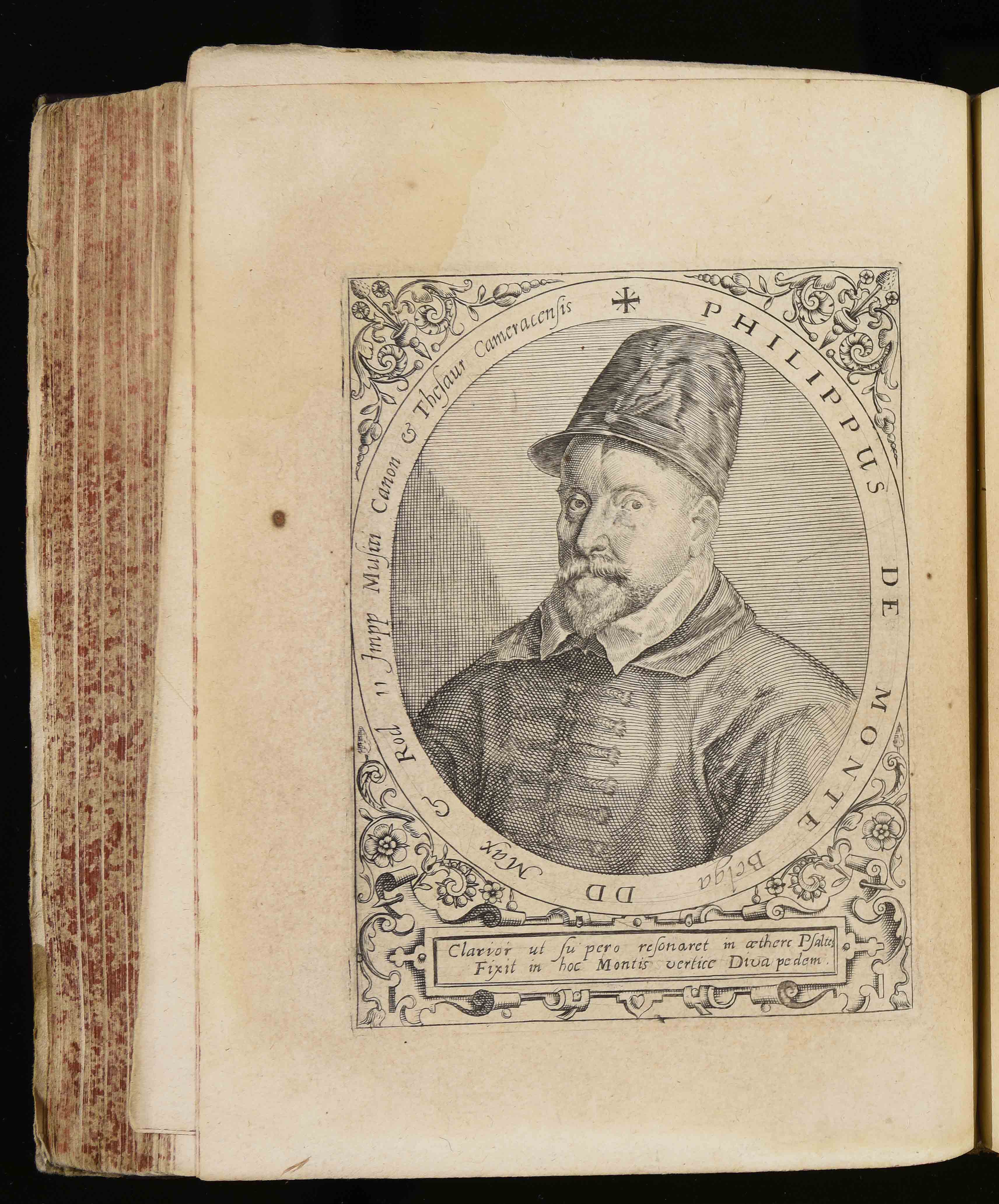| Philippus de Monte Belga DD Max et Rod II Impp musici canon et thesaur cameracensis. Clarior ut supero resonaret in aethere psaltes fixit in hoc montis vertice Diva pedem |