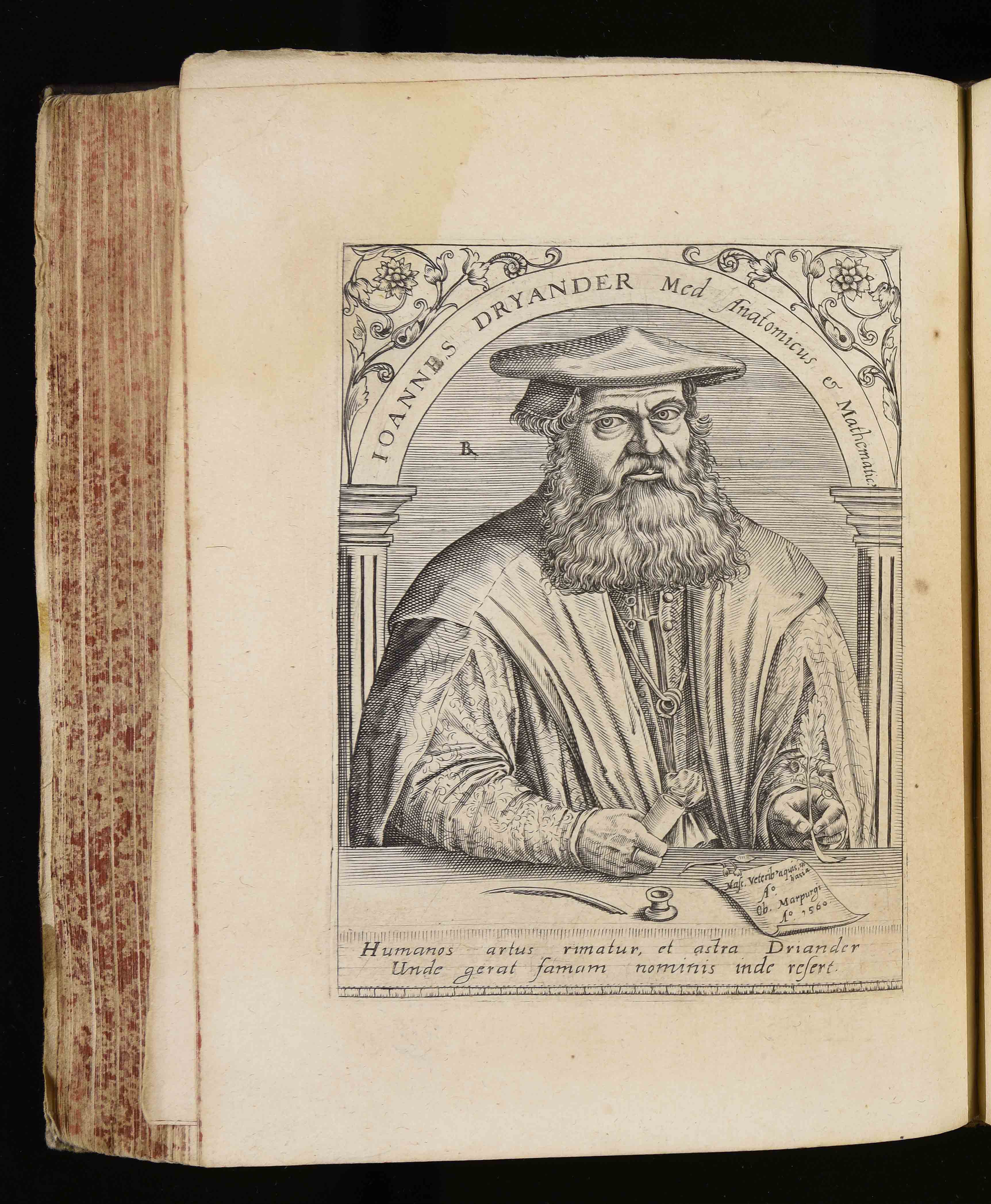 | Ioannes Dryander med. anatomicus et mathematicus. Nasc. Veteribus Aquis in hasia anno. Ob. Marpurgi anno 1560. Humanos artus rimatur et astra Driander unde gerat famam nominis inde resert |