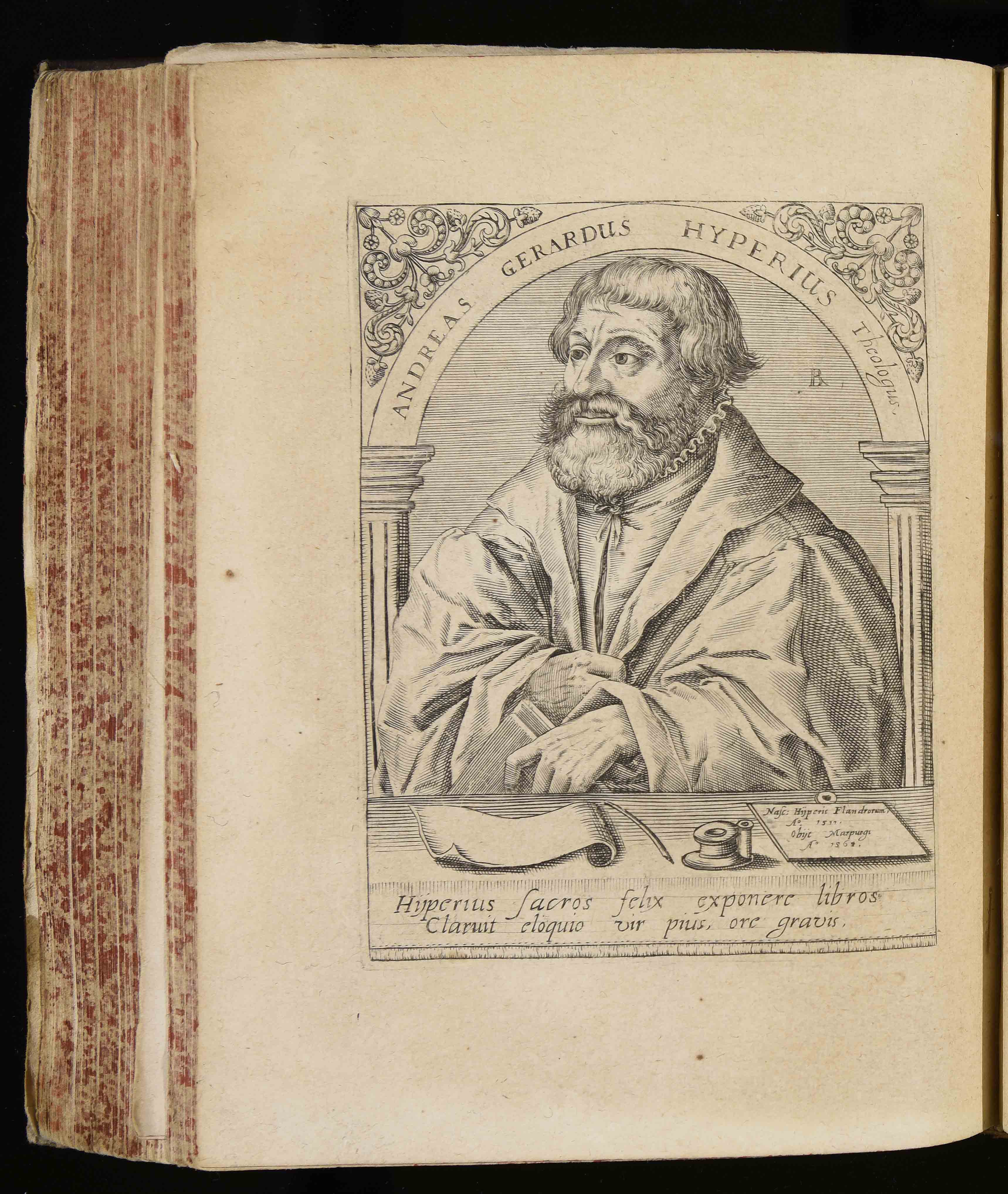 | Andreas Gerardus Hyperius theologus. Nasc: Hijperis Flandrorum anno 1511. Obijt Marpurgi anno 1564. Hijperius sacros felix exponere libros claruit eloquio vir pius ore gravis |