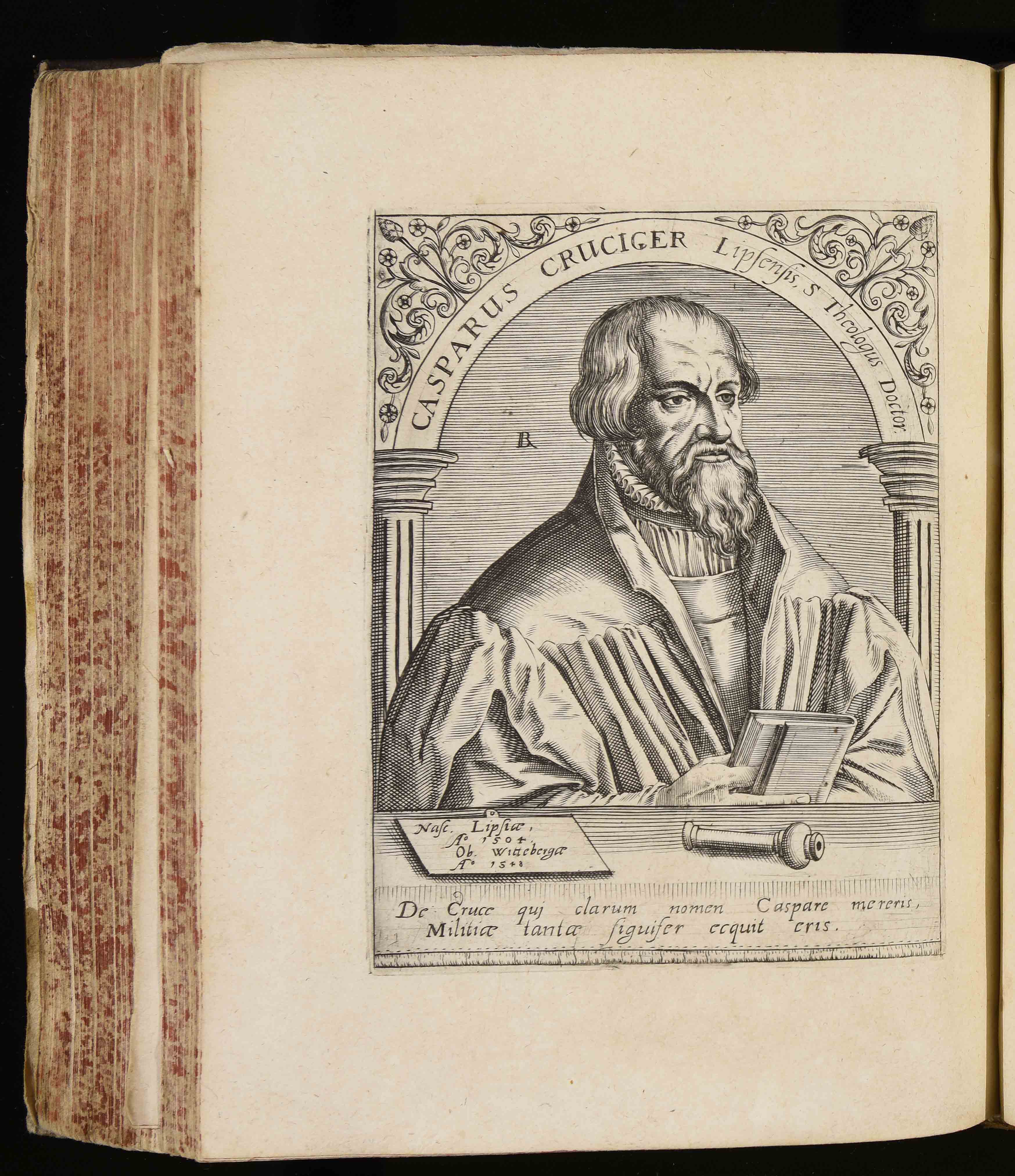 | Casparus Cruciger Lipsensis. s. theologus doctor. Nasc. Lipsiae anno 1504. Ob. Wittebergae anno 1548. De Cruce qui clarum nomen Caspare mereris militiae tantae siguifer ecquit eris |