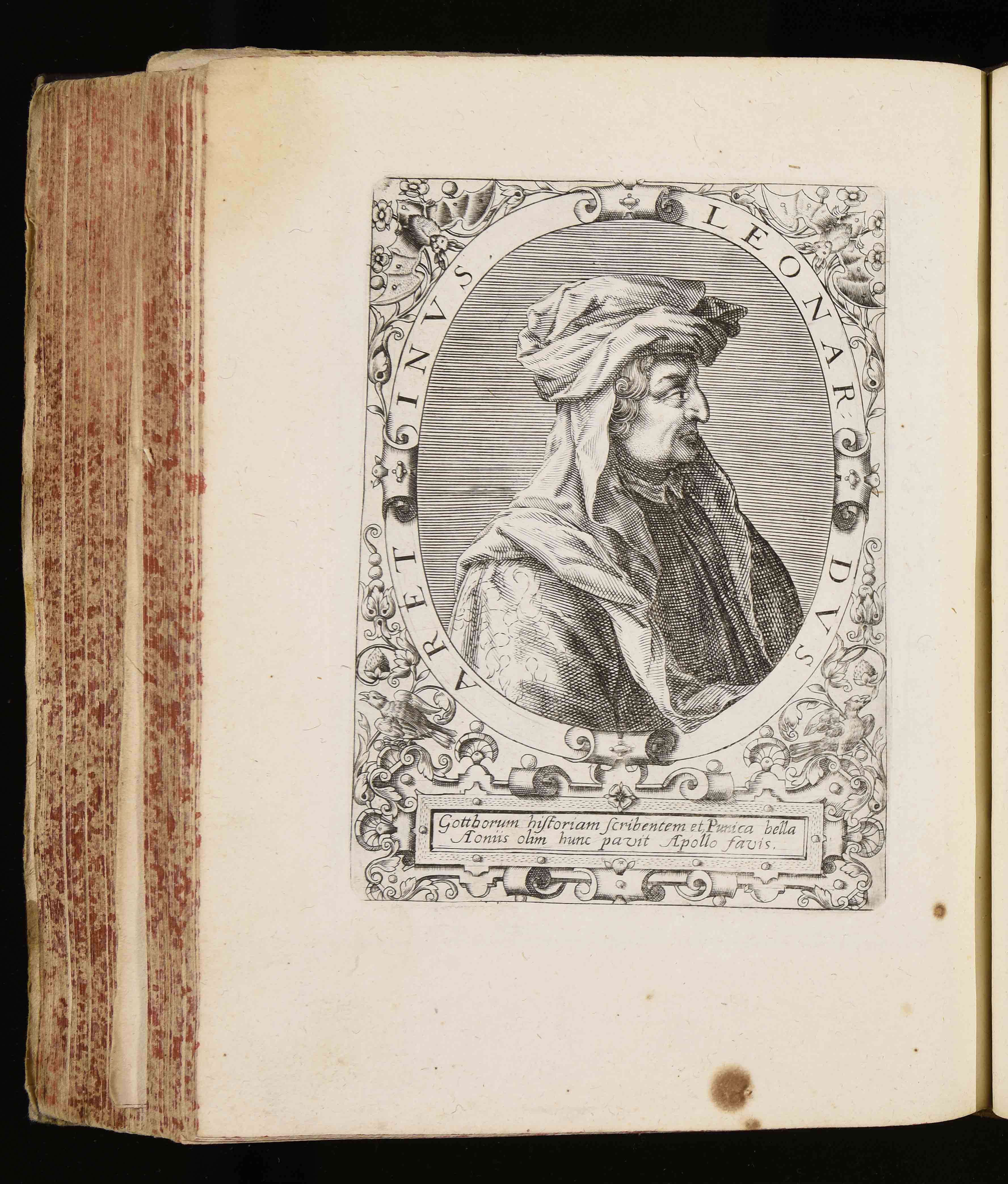 | Leonardus Aretinus. Gotthorum historiam scribentem et Punica bella Aoniis olim hunc pavit Apollo favis |