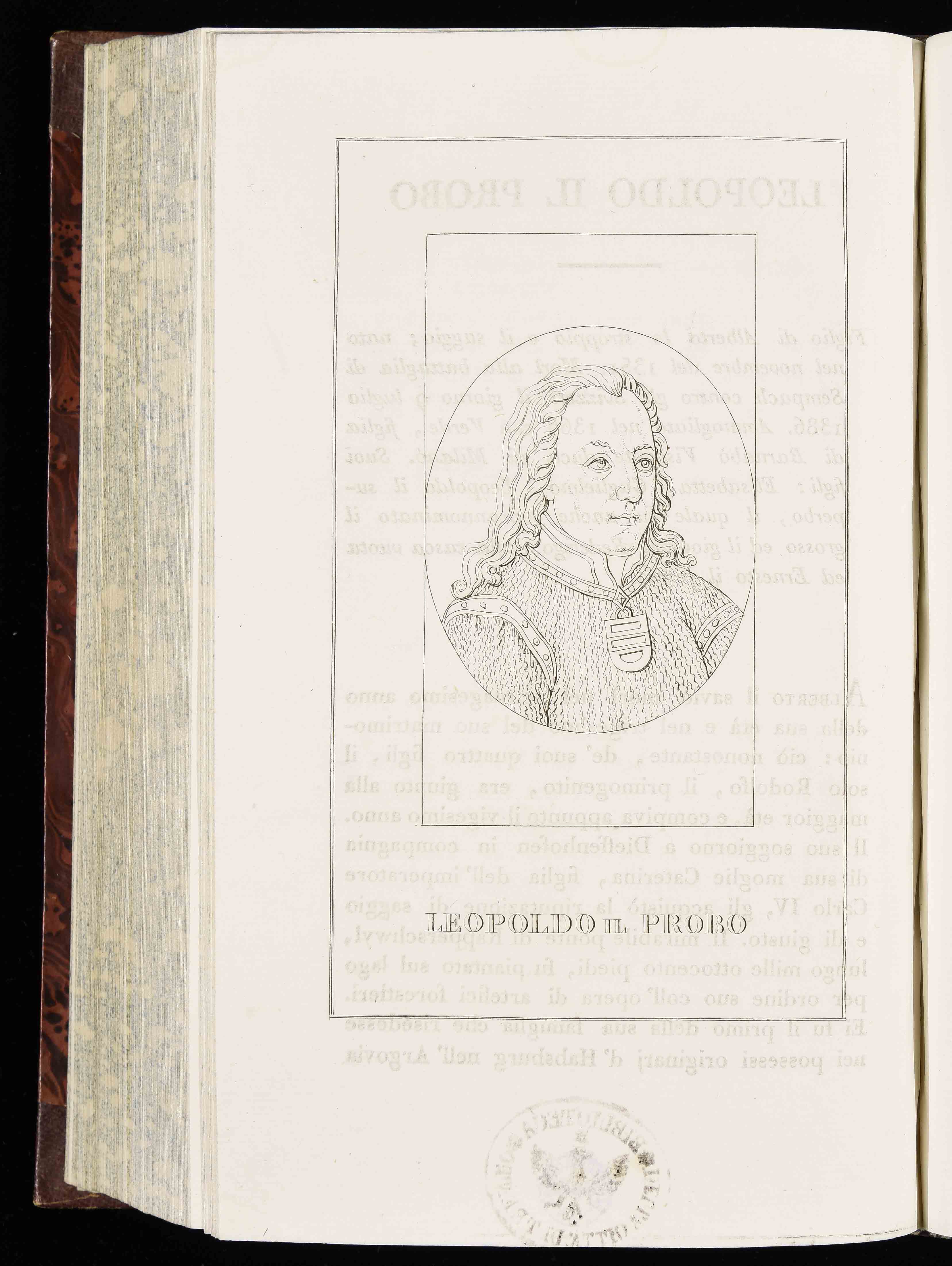 147x86 mm; in Joseph von Hormayr, Il Plutarco austriaco ossia Vite e ritratti di tutti i sovrani della casa d'Austria e dei più rinomati generali uomini di stato letterati ed artisti dell'impero austriaco, Milano, Imperiale regia stamperia, 1820-1823