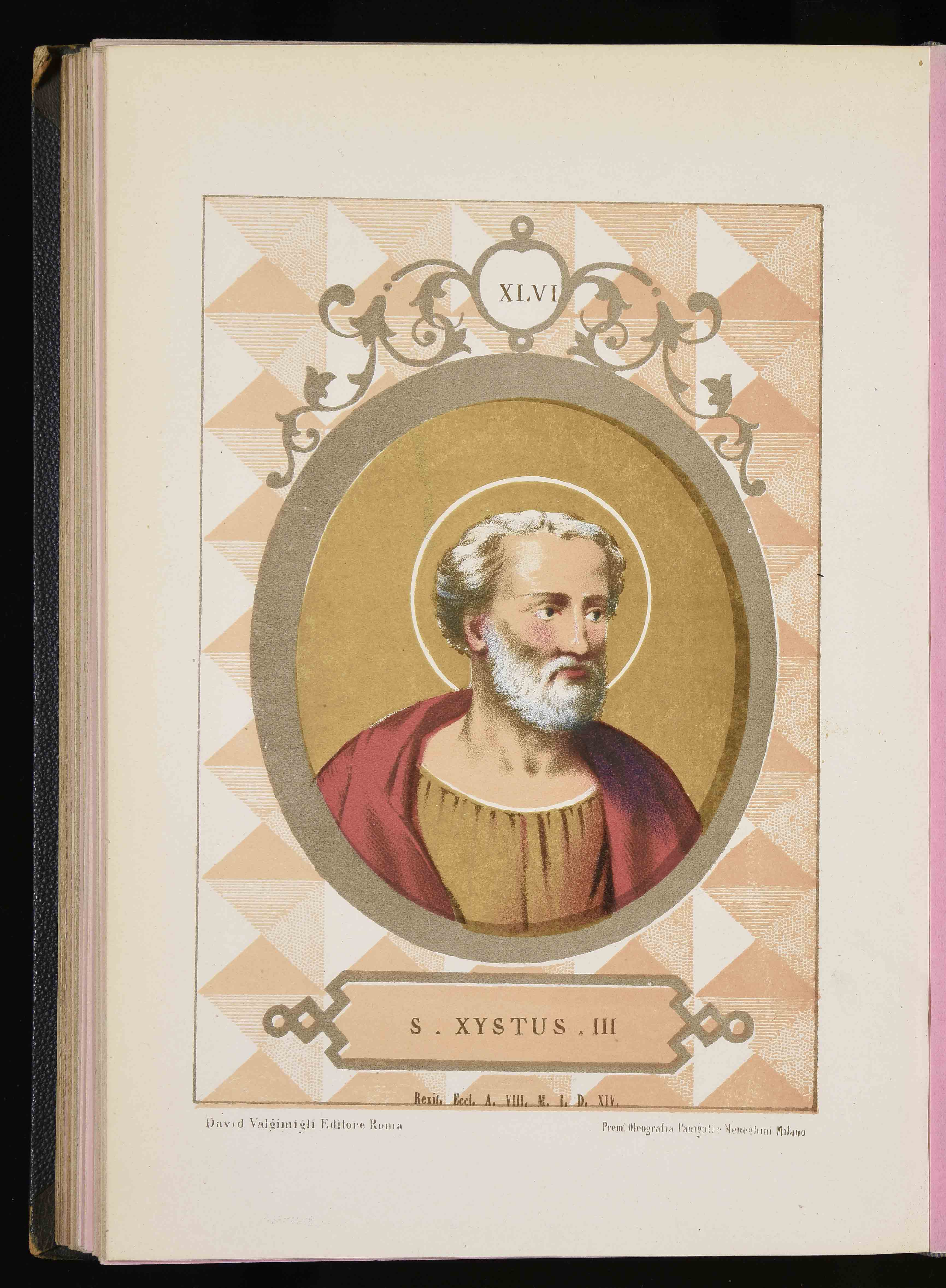260x177 mm; in Luigi Tripepi, Ritratti e biografie dei romani pontefici: da S. Pietro a Leone XIII, Roma, Tipografia della Pace, 1879
