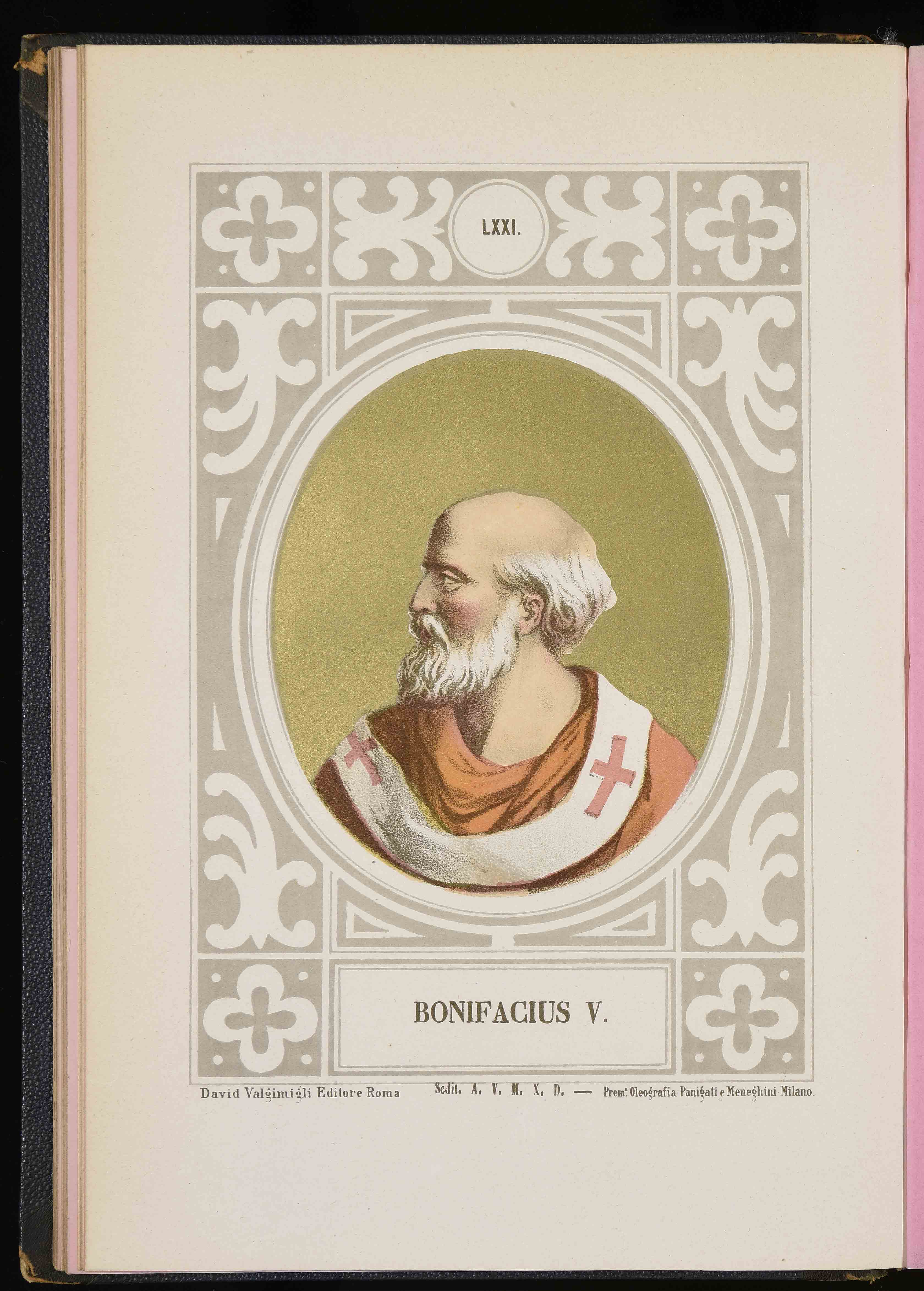 | Bonifacius V. Sedit A. V M. X D. -. |