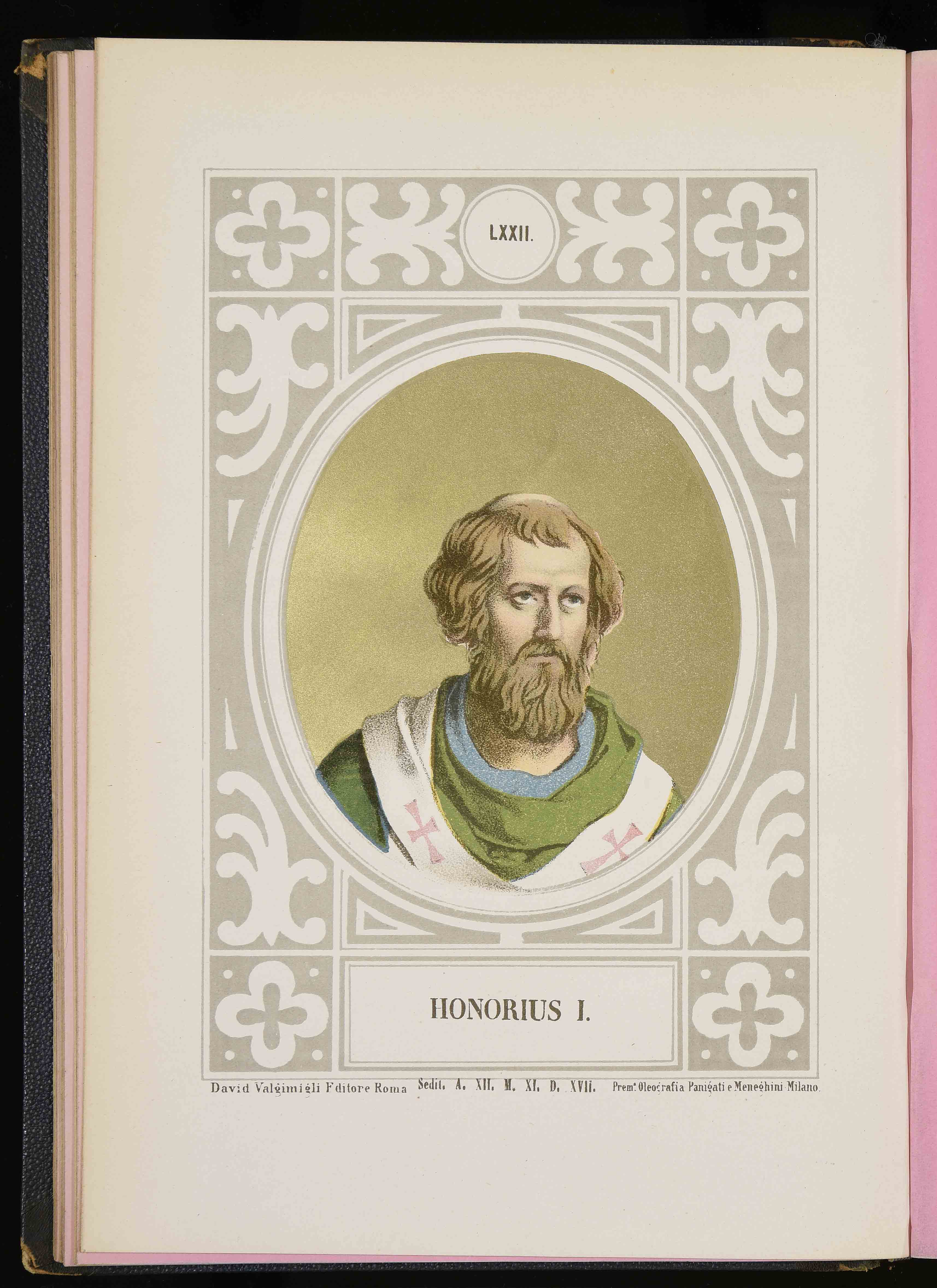 260x177 mm; in Luigi Tripepi, Ritratti e biografie dei romani pontefici: da S. Pietro a Leone XIII, Roma, Tipografia della Pace, 1879