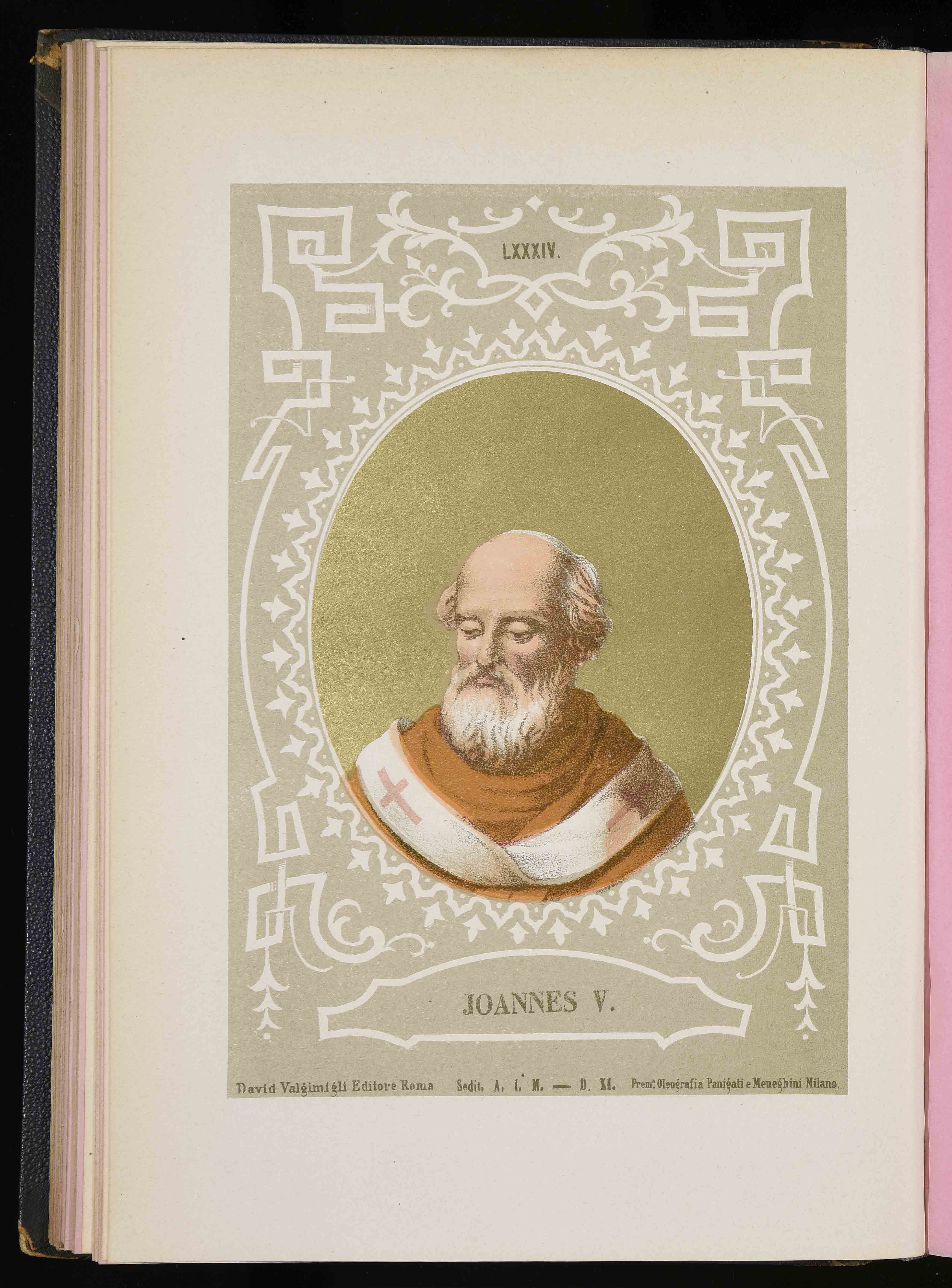260x177 mm; in Luigi Tripepi, Ritratti e biografie dei romani pontefici: da S. Pietro a Leone XIII, Roma, Tipografia della Pace, 1879