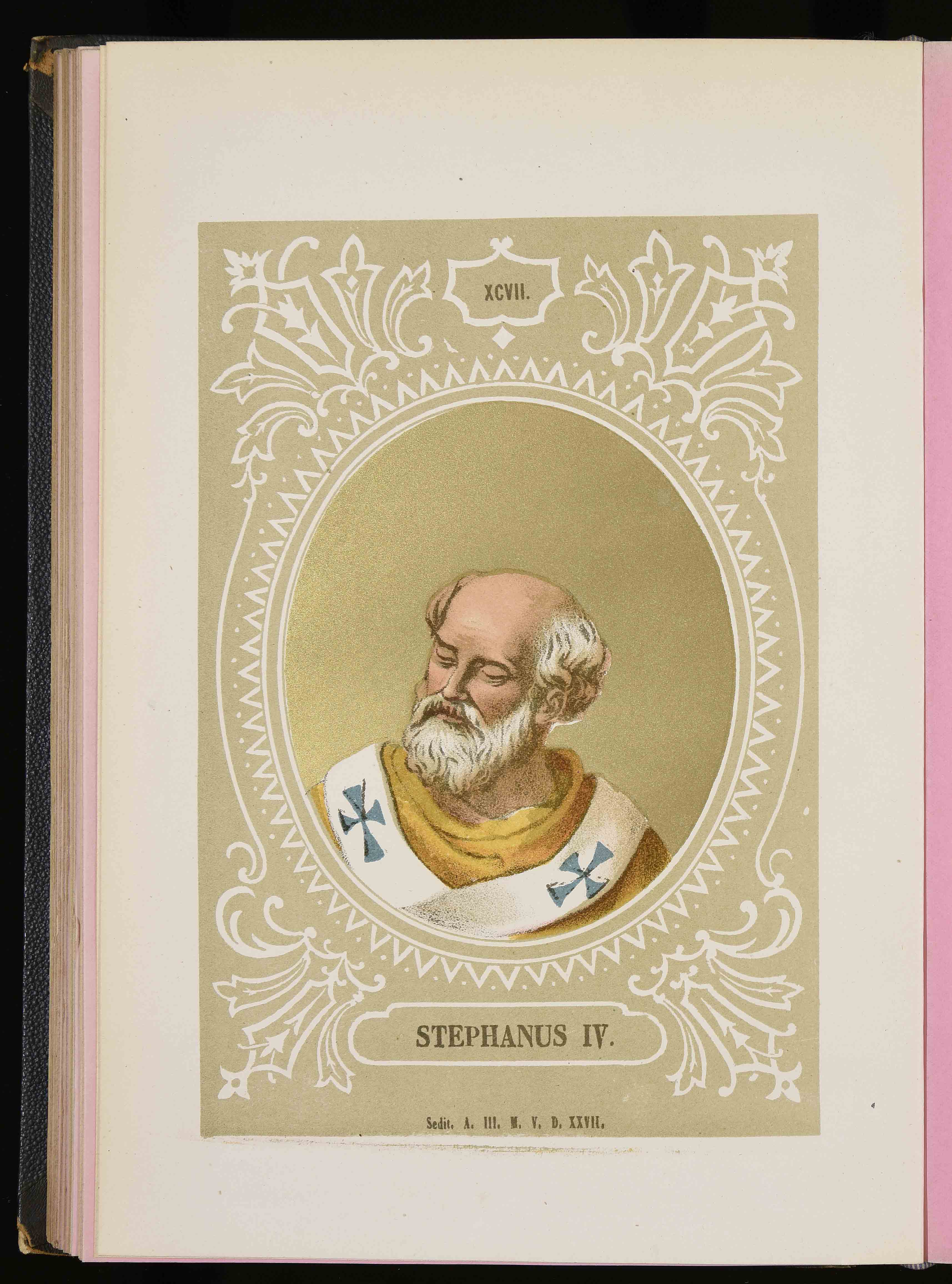 Stephanus IV. Sedit A. III M. V D. XXVII.