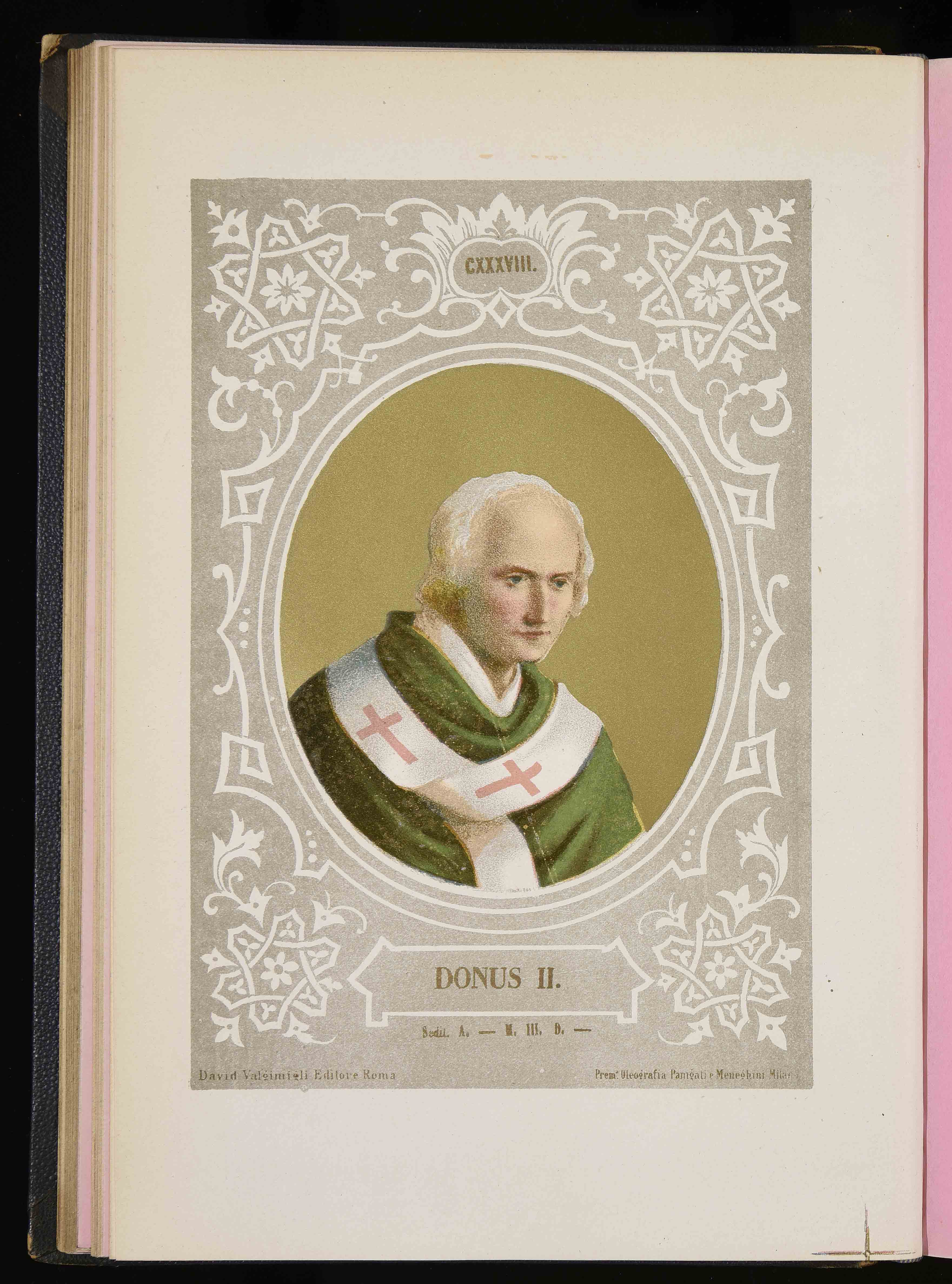 260x177 mm; in Luigi Tripepi, Ritratti e biografie dei romani pontefici: da S. Pietro a Leone XIII, Roma, Tipografia della Pace, 1879
