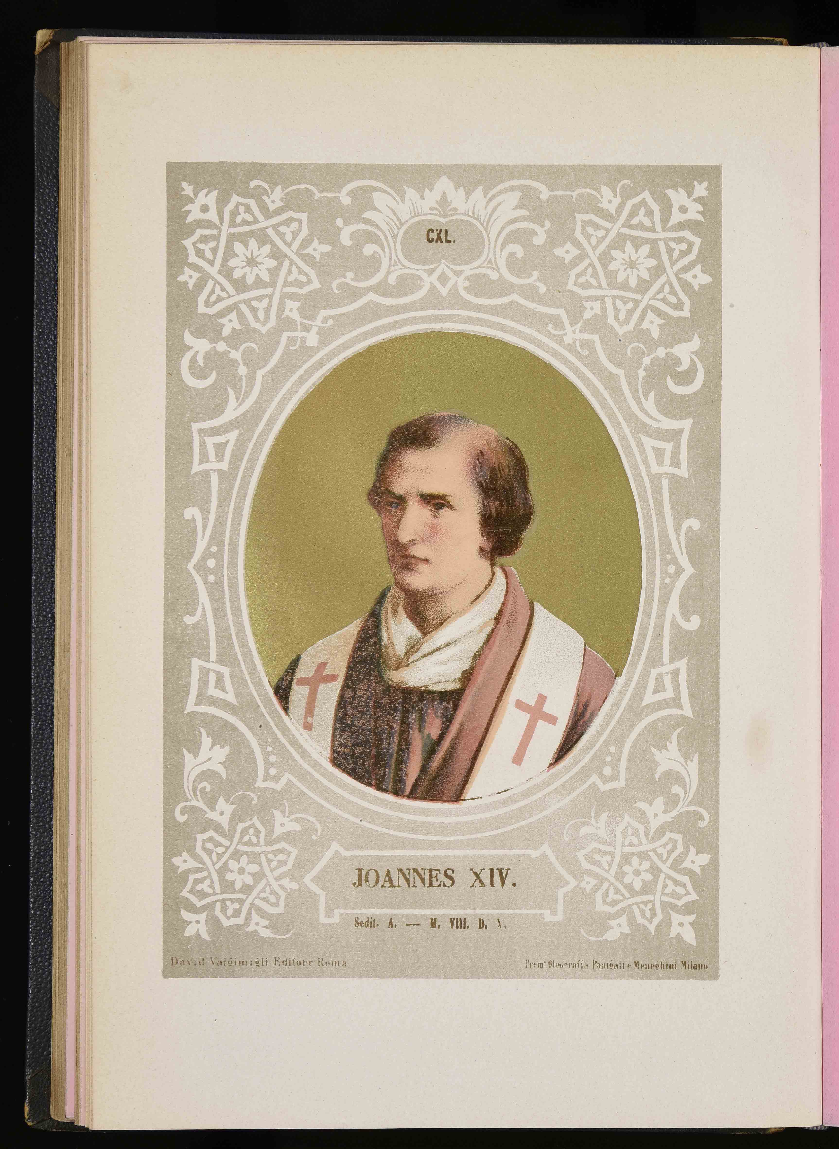 260x177 mm; in Luigi Tripepi, Ritratti e biografie dei romani pontefici: da S. Pietro a Leone XIII, Roma, Tipografia della Pace, 1879