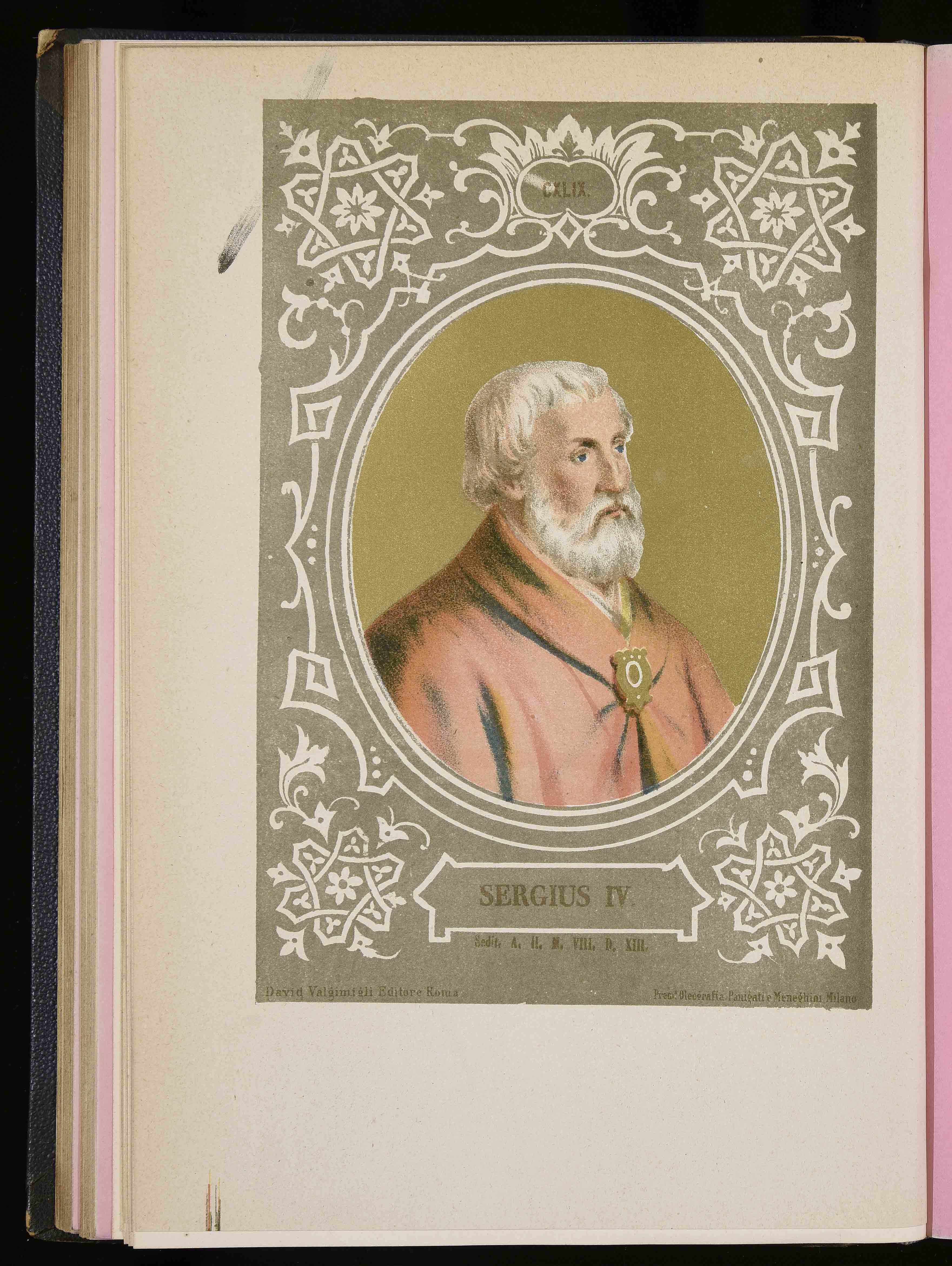 260x177 mm; in Luigi Tripepi, Ritratti e biografie dei romani pontefici: da S. Pietro a Leone XIII, Roma, Tipografia della Pace, 1879