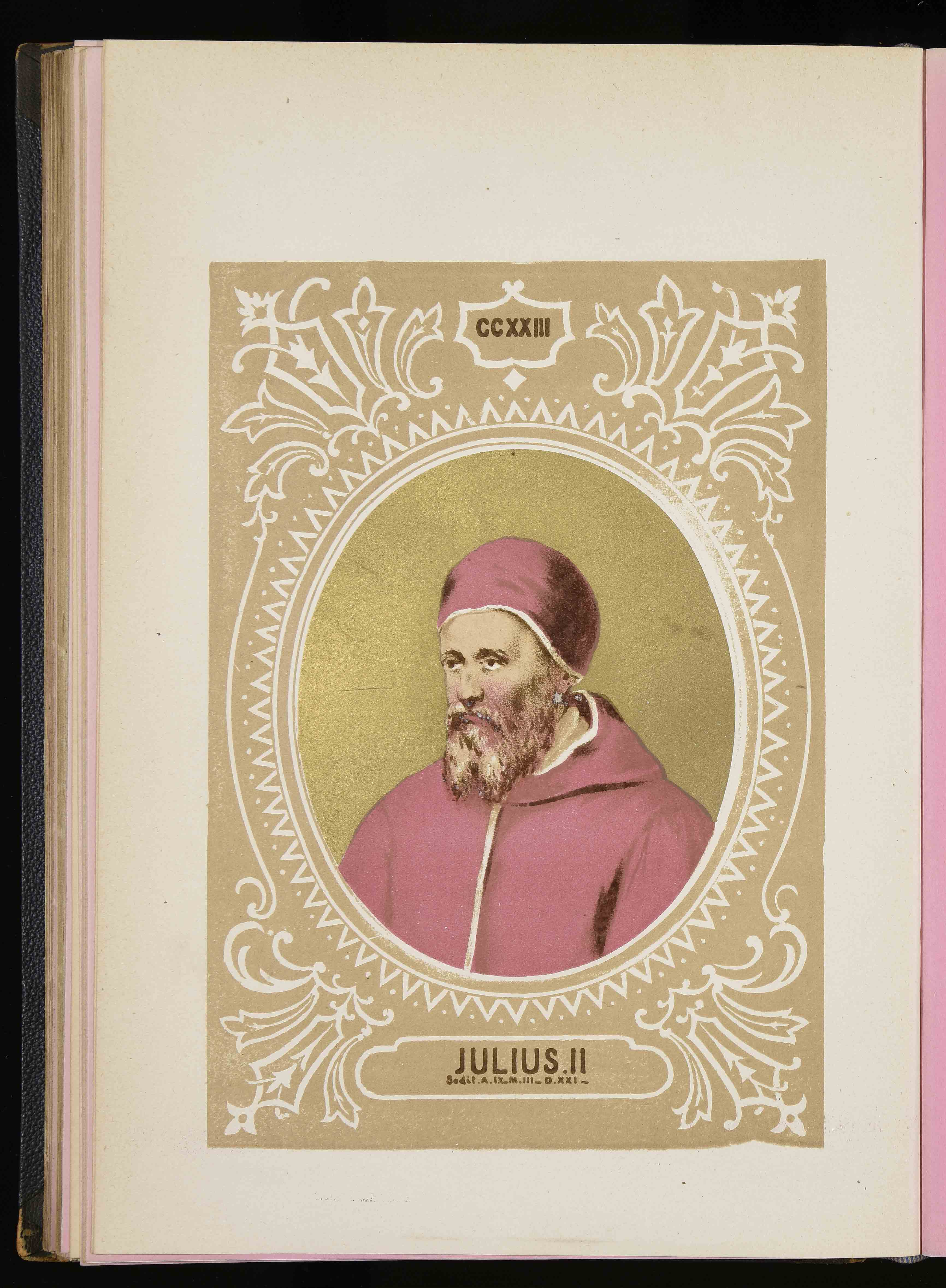 260x177 mm; in Luigi Tripepi, Ritratti e biografie dei romani pontefici: da S. Pietro a Leone XIII, Roma, Tipografia della Pace, 1879