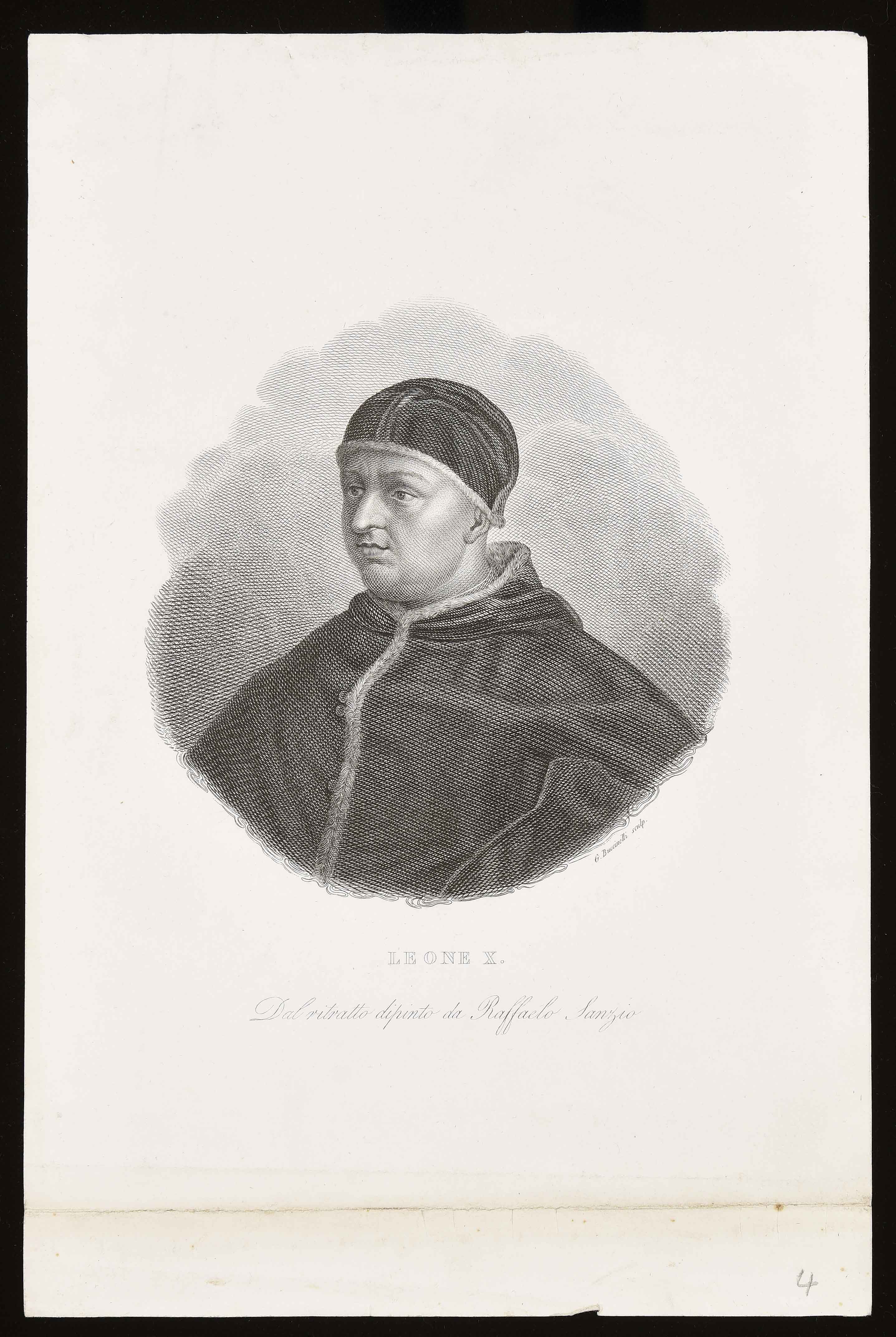 | Leone X. Dal ritratto dipinto da Raffaelo Sanzio. G. Buccinelli sculp. |