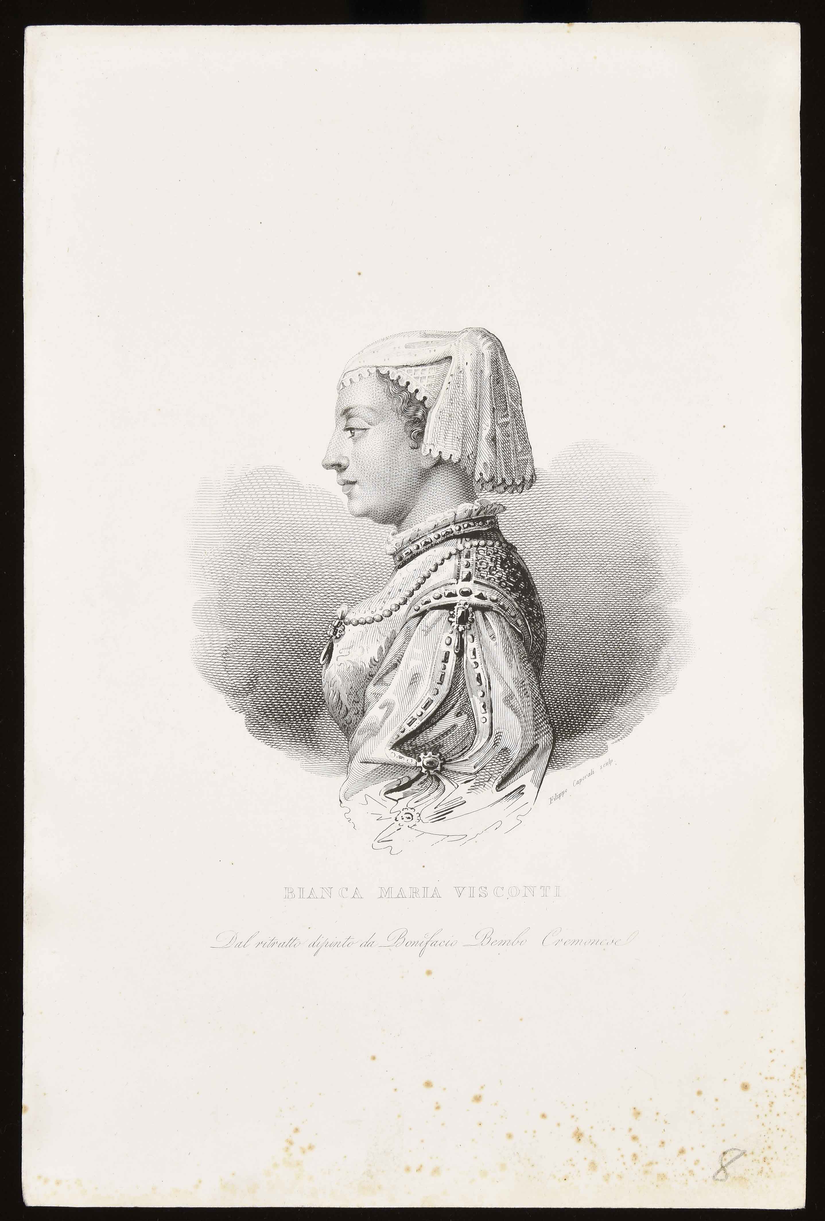 | Bianca Maria Visconti. Dal ritratto dipinto da Bonifacio Bembo cremonese. Filippo Caporali sculp. |